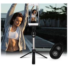 Selfie stick Selfie Stick Tripod K07 τρίποδο με τηλεχειριστήριο bluetooth / ασύρματη λαβή για φωτογραφίες μαύρο () - 5903396033605