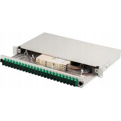 Πάνελ διασταύρωσης FO με εξοπλισμό 19'' 1U, 24x SC APC dx, OS2, pigtaile, adaptery, tacki, γκρι