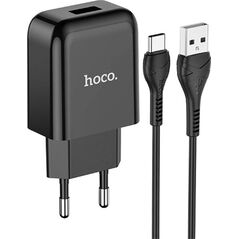 Kabel USB Ładowarka Sieciowa 2.1A + Kabel USB-USB-C Hoco N2 czarna