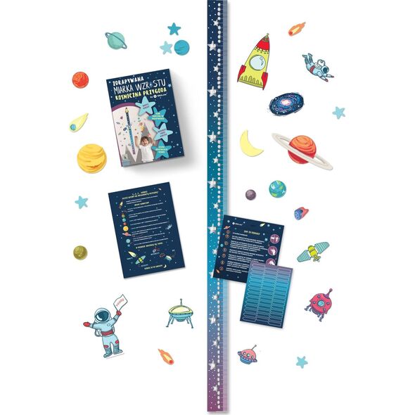 Η ΜΕΤΡΗΣΗ ΥΨΟΥΣ "ΔΙΑΣΤΗΜΑΤΙΚΗ ΠΕΡΙΠΕΤΕΙΑ" είναι ένα καταπληκτικό gadget για αγόρια που θα μετατρέψει μια συνηθισμένη μέτρηση ύψους σε μεγάλη περιπέτεια. Η σήμανση των επόμενων σταδίων ανάπτυξης με το ξύσιμο μιας ειδικής επίστρωσης είναι πολύ διασκεδαστική για τα παιδιά και τους γονείς τους Μια υπέροχη προσθήκη και διακόσμηση για το παιδικό δωμάτιο, αλλά και μια πρωτότυπη ιδέα δώρου για κάθε αγόρι Μέγεθος μέτρου: 95 x 5 cm Αριθμός στοιχείων: 17 x 24 cm Υλικό: Πλαστικό ανθεκτικό στο σπάσιμο και στην καταστροφή ΑΠΙΣΤΕΥΤΗ ΕΜΦΑΝΙΣΗ. Γράφημα ανάπτυξης Scratch-off "SPACE ADVENTURE" είναι μια επαναστατική προσέγγιση στο θέμα των διαγραμμάτων ύψους για παιδιά. Δεν είναι μόνο ένα χρήσιμο gadget, αλλά και μια όμορφη διακόσμηση για το παιδικό δωμάτιο. Το αποτέλεσμα θα είναι μια όμορφη και πολύχρωμη ιστορία της ενηλικίωσης ενός παιδιού, που θα διακοσμήσει ένα μοντέρνο εσωτερικό. προτού. Θα είναι ένα υπέροχο δώρο για νέους, δυναμικούς ανθρώπους που αντιμετωπίζουν τη ζωή ως έναν τρόπο να ανακαλύπτουν συνεχώς νέα πράγματα. Εκτός από τον πίνακα ύψους, το σετ περιλαμβάνει επίσης 25 πλαστικά στοιχεία με διαστημικά σχέδια για τη διακόσμηση του δωματίου ενός αγοριού και 41 αυτοκόλλητα για την καταγραφή των ημερομηνιών μετρήσεων ύψους. Πρόσθετα στοιχεία θα διακοσμήσουν το δωμάτιο του παιδιού και θα κάνουν τις μετρήσεις ύψους πιο ελκυστικές. Είναι μια υπέροχη ιδέα για δώρο για φιλόδοξους και ανοιχτόμυαλους γονείς και τα παιδιά τους Ο Πίνακας Ύψους Scratch-Off "SPACE ADVENTURE" είναι συσκευασμένος σε ένα όμορφο κουτί που το προστατεύει από ζημιές και λύνει το πρόβλημα της συσκευασίας του δώρου Είναι εξ ολοκλήρου προετοιμασμένο σε ένα σωληνάριο, κρυμμένο με ενδιαφέροντα στοιχεία για το χώρο ταινία με επίστρωση scratch-off (μέγεθος: 5x90 cm, υλικό: εύκαμπτο πλαστικό) Σετ διακοσμητικών με σχέδια χώρου ειδικά για αγορίστικο δωμάτιο (25 τεμ.) Αυτοκόλλητα για εγγραφή των ημερομηνιών μετρήσεων ύψους (41 τμχ.) Κόλλα για να στερεώσετε τη μεζούρα και τα διακοσμητικά στοιχεία Εκπαιδευτική κάρτα με ενδιαφέροντα στοιχεία για το διάστημα ΠΩΣ ΝΑ ΧΡΗΣΙΜΟΠΟΙΗΣΕΤΕ 1. Ανοίξτε τη μεζούρα και αφαιρέστε τη μεζούρα από το ύψος και τα άλλα στοιχεία του σετ κολλήστε το ASTRONAUT σε αυτό χρησιμοποιώντας την κόλλα Glue Drop που περιλαμβάνεται στο σετ. Θυμηθείτε ότι το κάτω στοιχείο του ΑΣΤΡΟΝΑΥΤΗ θα πρέπει να είναι κάθετο στη γραμμή χάρακα.3. Στερεώστε το διάγραμμα ύψους και τα «στοιχεία διαστήματος» στον τοίχο χρησιμοποιώντας τα παρεχόμενα «Κόλλα σταγόνες». Κάντε το μαζί με το παιδί σας και χρησιμοποιήστε αυτό το χρόνο για διασκέδαση. Θυμηθείτε ότι ο πυθμένας του κυπέλλου μέτρησης πρέπει να απέχει ακριβώς 60 cm από το πάτωμα. Στερεώστε το μεζούρα με δύο κομμάτια κόλλας - στο κάτω και στο πάνω μέρος του δοσομετρητή. Τέλος, συνδέστε τον πύραυλο εκτόξευσης στην κορυφή του χάρακα4. Μετρήστε το παιδί χρησιμοποιώντας τον αστροναύτη και, στη συνέχεια, αφαιρέστε το στρώμα γρατσουνιάς, σημειώνοντας το τρέχον ύψος του.5. Τοποθετήστε το αυτοκόλλητο που περιλαμβάνεται στο σετ, γράψτε την ημερομηνία μέτρησης και απολαύστε το όμορφο αποτέλεσμα σταθείτε ίσια.