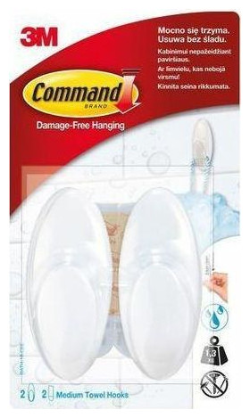 3M Command Towel Hooks 2 Medium White BATH-18-CEE
