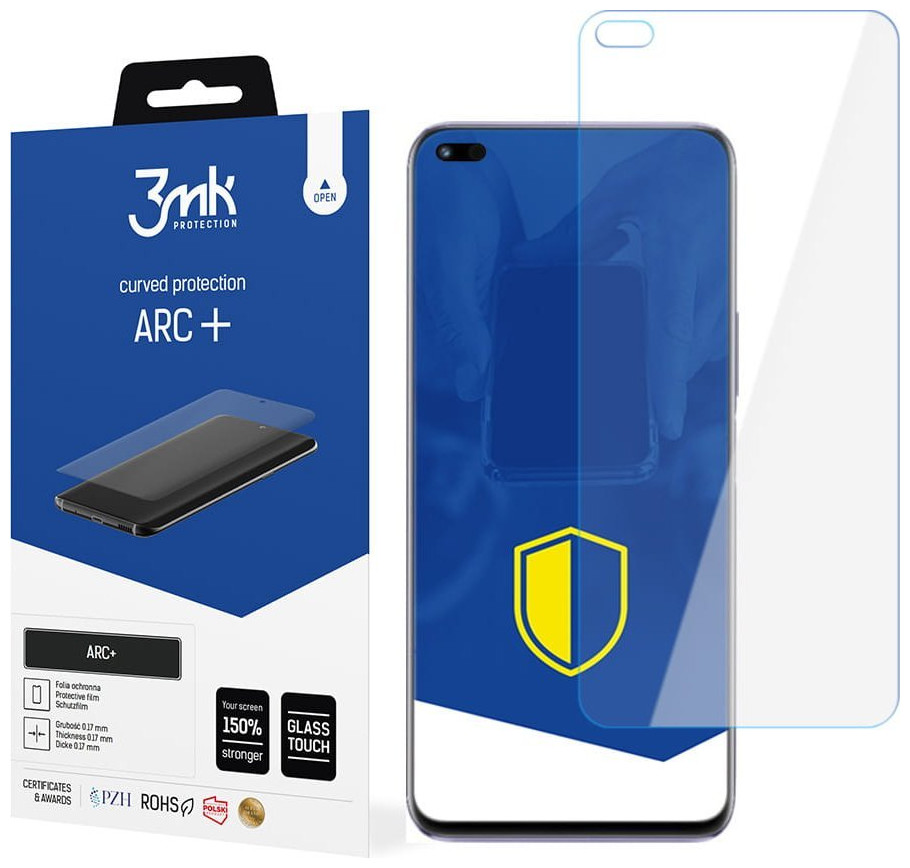 Προστατευτική μεμβράνη για Honor Nova 8i ARC+ Προστασία για κυρτή οθόνη Η κυρτή οθόνη είναι μια πραγματική πρόκληση για τους σχεδιαστές μεμβράνης και γυαλιών. Συμβαίνει η προστασία να ξεκολλάει ή να βγαίνει έξω, με αποτέλεσμα να είναι λιγότερο προστατευτική. Διάλυμα; Αλουμινόχαρτο ARC+™ σχεδιασμένο με ιδιαίτερη προσοχή στις ανάγκες των στρογγυλεμένων οθονών. Προσκολλάται από άκρη σε άκρη, προστατεύοντας ολόκληρη την οθόνη Ημι-Υγρή Εγκατάσταση Γιατί επιλέξαμε την εγκατάσταση με τζελ στήριξης; Πρώτα απ 'όλα, αυτή η μέθοδος θα σας επιτρέψει να επιτύχετε ένα τέλειο αποτέλεσμα: μπορείτε εύκολα να εγκαταστήσετε το αλουμινόχαρτο, το φύλλο κολλάει τέλεια στη συσκευή, ακόμη και στις άκρες, και δεν ξεκολλάει. Μπορείτε επίσης να αλλάξετε εύκολα τη θέση του φύλλου στην οθόνη κατά την εγκατάσταση Η οθόνη είναι 150% ισχυρότερη. Το ARC+™ είναι μια λύση που πληροί και τις δύο αυτές προϋποθέσεις. Πάχος μόνο 0,17 mm και η οθόνη ενισχύεται έως και 150%, επομένως δεν θα φοβάστε τις γρατσουνιές και τα χτυπήματα Τέλεια διαφάνεια Φοβάστε ότι όταν κολλήσετε το φύλλο, ο κορεσμός ή η ευκρίνεια του χρώματος θα επιδεινωθεί; Εντελώς περιττό! Η δομή του φύλλου θα διασφαλίσει ότι διατηρούνται τα πραγματικά χρώματα του εμφανιζόμενου περιεχομένου. Το φύλλο ARC+™ εγγυάται τέλεια αναπαραγωγή χρωμάτων στην οθόνη και εξαιρετική διαύγεια!Self-Heal™ Για να κάνουμε το φύλλο ARC+™ μια ακόμη πιο πρακτική λύση, χρησιμοποιήσαμε την επίστρωση Self-Heal™. Το αλουμινόχαρτο αυτο-αναγεννά μικρές γρατσουνιές και ζημιές μέσα σε 24 ώρες. Η χρήση της προστασίας είναι όσο το δυνατόν πιο άνετη, επειδή μπορείτε να απολαύσετε την τέλεια λεία μεμβράνη ακόμα περισσότερο. Το ARC+™ είναι μια εξαιρετική επιλογή: το φύλλο έχει μια ομοιόμορφη, λεία επιφάνεια ευαίσθητη στην αφή. Παρέχει αποτελεσματικό ξεκλείδωμα οθόνης και εξαιρετική απόκριση. Εξαιρετική ευκολία στα χέρια σας Πιστοποιητικό PZH Το ερευνητικό πείραμα dscout έδειξε ότι ο μέσος χρήστης κρατά το τηλέφωνο στο χέρι του σχεδόν 2,5 ώρες την ημέρα. Το ARC+™ είναι πιστοποιημένο από το Εθνικό Ινστιτούτο Υγιεινής, το οποίο εγγυάται ότι είναι απαλλαγμένο από επιβλαβείς ουσίες και ασφαλές για την υγεία - ανεξάρτητα από το πόσο χρόνο ξοδεύετε με το πιστοποιητικό RoHS Κατά την ασφάλεια των τηλεφώνων, φροντίζουμε τον πλανήτη. Το ARC+™ έχει περάσει με επιτυχία την πιστοποίηση RoHS σε ανεξάρτητο εργαστήριο - αυτό σημαίνει ότι είναι φιλικό προς το περιβάλλον και συμμορφώνεται με τις αυστηρές οδηγίες της ΕΕ σχετικά με την περιεκτικότητα σε βαρέα μέταλλα και επικίνδυνες ουσίες (συμπεριλαμβανομένου του μολύβδου, του υδραργύρου και του καδμίου). ARC+™ για την οθόνη, πανί που δεν αφήνει χνούδι, βρεγμένο πανί, τζελ εγκατάστασης, Anti-Bubble Card™ Οδηγίες βίντεοΣυχνές ερωτήσεις Μπορούν να παραμείνουν φυσαλίδες μετά την εγκατάσταση του φύλλου ARC+™; Ναί. Θυμηθείτε, ωστόσο, ότι το φύλλο ARC+™ έχει ημιπερατή δομή, η οποία επιτρέπει στις φυσαλίδες αέρα να εξαφανίζονται εντός 48 ωρών το πολύ - επομένως χρειάζεται απλώς να είστε υπομονετικοί. Εάν παρόλα αυτά παραμείνουν φυσαλίδες, αυτό σημαίνει ότι η βρωμιά συσσωρεύτηκε κάτω από το φύλλο αλουμινίου κατά τη διαδικασία εγκατάστασης. Ποια είναι η διαφορά μεταξύ υβριδικού γυαλιού και φύλλου; Το υβριδικό γυαλί είναι ένας συνδυασμός των πλεονεκτημάτων του γυαλιού (αντοχή, αντοχή) και του φύλλου (ευελιξία, ευελιξία). Χάρη σε αυτό, καταφέραμε να δημιουργήσουμε έν