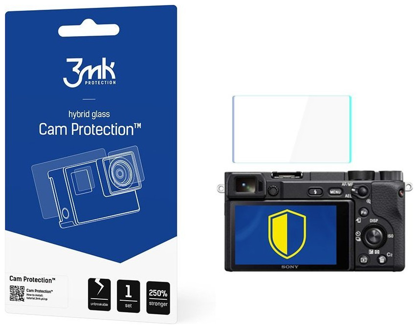 Sony A6400 - 3mk Cam Protection™ 3mk Cam Protection- Szkło hybrydowe do kamer i aparatówSkuteczność – do 250% większa odporność na uderzeniaTrwałość – nie pęka, więc przetrwa nie jedną przygodęŁatwość montażu – bez bąbelków, dzięki Inviscid-SilChroni i wzmacniaSzkło ochronne do kamer i aparatów Cam Protection zwiększa odporność wyświetlacza oraz/lub obiektywu na stłuczenia nawet o 250% i chroni przed zarysowaniami na poziomie 7H. Dzięki temu możesz utrwalać niepowtarzalne momenty i realizować najśmielsze scenariusze filmowe, będąc spokojnym o bezpieczeństwo sprzętu. Zapomnij o pancernej masywności ochron! Będziesz zaskoczony, jak cienkie jest szkło Cam Protection. Zaledwie 0,2 mm grubości sprawia, że po naklejeniu staje się praktycznie niewidzialne. Nie pęka podczas przygódKoniec z niebezpiecznymi odłamkami i częstym wymienianiem ochron wyświetlacza/obiektywu. Cam Protection nie pęka! To innowacyjna hybryda, łącząca elastyczność folii ochronnej i odporność szkła hartowanego. Szkło hybrydowe Cam Protection przetrwa niejedną przygodę w nienaruszonym stanie, minimalizując straty w sprzęcie. Nie wpływa na jakość rejestrowanego obrazu. Struktura Cam Protection została wzbogacona o powłoki ceramiczne oraz o warstwę oleofobową, która zapobiega zabrudzeniom i osadzaniu się kurzu.Montaż bez bąbelkówSzkło hybrydowe na kamerę Cam Protection zostało zaprojektowane tak, aby każdy – bez wyjątku – poradził sobie z instalacją ochrony w domowych warunkach. Jest doskonale zwymiarowane, dedykowane konkretnym modelom urządzeń Canon, Fujifilm, GoPro, Nikon, Panasonic, Sony i Xiaomi. Substancja klejąca Inviscid-Sil zapobiega powstawaniu bąbelków podczas montażu. Jeśli w przyszłości postanowisz odkleić szkło Cam Protection, zrobisz to bez problemu i bez śladu.