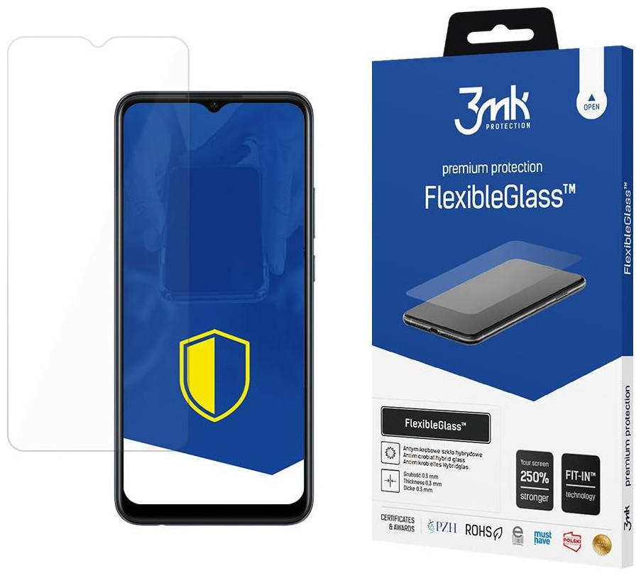 FlexibleGlass Εξαιρετικά λεπτό – σχεδόν αόρατο προστατευτικό οθόνης. Αποτελεσματικό στην προστασία - ενισχύει την οθόνη έως και 250% και είναι ανθεκτικό στις γρατσουνιές. Αντιβακτηριδιακή επίστρωση - διασφαλίζει την ασφάλεια για εσάς και το τηλέφωνό σας. Γνωρίζουμε ότι η αρχική εμφάνιση του smartphone είναι σημαντική. Γι' αυτό δημιουργήσαμε γυαλί που όχι μόνο προστατεύει τέλεια την οθόνη, αλλά επιπλέον - είναι σχεδόν αόρατο. Λιγότερο από μισό χιλιοστό είναι ένα πάχος που είναι πραγματικά δύσκολο να το δεις και να το νιώσεις κάτω από το δάχτυλό σου. Χάρη σε αυτό, έχετε την εντύπωση ότι το δάχτυλό σας γλιστράει πάνω σε λείο γυαλί. Χρειάζεστε σταθερή προστασία σε διακριτική μορφή; Επιλέξτε FlexibleGlass! Ισχυρότερη προστασία από ποτέ Η ενίσχυση της οθόνης κατά 250% κάνει τη διαφορά. Με το Flex μας, οι πτώσεις από ύψος σε μια σκληρή επιφάνεια θα γίνουν αβλαβείς για την οθόνη του τηλεφώνου σας. Το υβρίδιο απορροφά την ενέργεια κρούσης, προστατεύοντας αποτελεσματικά την οθόνη από θραύση. Επομένως, με το FlexibleGlass μπορείτε να χρησιμοποιείτε το τηλέφωνό σας χωρίς άγχος ακόμα και όταν σκαρφαλώνετε σε βράχους. Η τέλεια λεία οθόνη FlexibleGlass είναι ιδιαίτερα ανθεκτική στις γρατσουνιές χάρη σε ένα πρόσθετο κεραμικό στρώμα που διασφαλίζει ότι η σκληρότητα του γυαλιού είναι 7H. Με το υβριδικό μας, μπορείτε να είστε σίγουροι ότι η οθόνη του τηλεφώνου σας θα είναι σαν καινούργια ακόμα και μετά από πολύ καιρό χρήσης. Μπορείτε να κρατήσετε το smartphone σας στην τσέπη ή στην τσάντα σας με τα κλειδιά σας και το ποτήρι μας θα εξασφαλίσει ότι δεν θα εμφανιστεί ούτε μια γρατσουνιά στην οθόνη.{Type} Γυαλί . {Dedicated model} A15 . {Προορισμός} Για την οθόνη