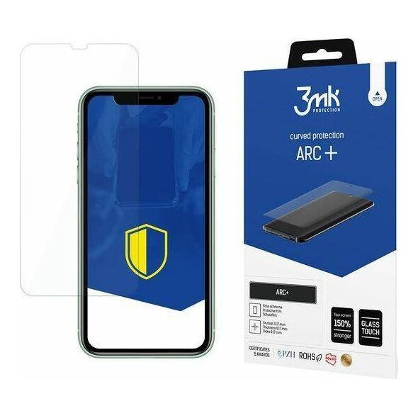 3mk Arc+ Η στρογγυλεμένη οθόνη ενισχυμένη με 150%ARC+™ είναι η απάντηση στις ανάγκες των κατόχων τηλεφώνων με στρογγυλεμένη οθόνη. Θα διασφαλίσει ότι το smartphone σας έχει περισσότερες πιθανότητες να επιβιώσει από αναπόφευκτες πτώσεις, κρούσεις και γρατσουνιές. Το προϊόν είναι εμπλουτισμένο με τεχνολογία Self-Heal™ - τι σημαίνει αυτό; Ότι όλες οι μικρές φθορές αφαιρούνται από μόνοι τους μέσα σε 24 ώρες. Η εξαιρετική ευκρίνεια της οθόνης και η καλή αναπαραγωγή χρωμάτων είναι ένα άλλο από τα πλεονεκτήματά του. Η ομαλή δομή βοηθά στην ανάγνωση των δακτυλικών αποτυπωμάτων χωρίς σφάλματα, επομένως το ξεκλείδωμα του τηλεφώνου είναι γρήγορο. Τοποθετήστε το χωρίς εμπόδια, ακόμη και σε στρογγυλεμένες άκρες.{Τύπος} Αλουμινόχαρτο . {Dedicated model} iPhone 11. {Προορισμός} Για την οθόνη