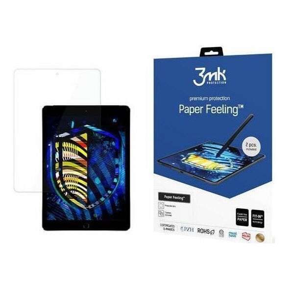 3MK Paper Feeling(tm) Σχεδιάστε, γράψτε και προστατέψτε τη συσκευή σας Τύπος: προστατευτική μεμβράνη - αφή σαν χαρτί, ιδανική για γραφίδες - ενισχύει την οθόνη κατά 200% - πάχος μόνο 0,18 mm - 2 τεμάχια σε ένα σετ Αίσθηση χαρτιού (tm). είναι αλουμινόχαρτο που διατηρείται εύκολα καθαρό και αποτρέπει το σχηματισμό λεκέδων στην οθόνη. Όχι μόνο θα προστατεύσετε το tablet σας και θα διασφαλίσετε την ασφάλειά του, αλλά χάρη στην επίστρωση που αντανακλά το φως, θα νιώσετε εξαιρετική άνεση στην εργασία και θα μεταφέρετε τη συσκευή σας σε εντελώς διαφορετικό επίπεδο ποιότητας χρήσης. Η γραφίδα γλιστράει στην οθόνη, αλλά νιώθετε σαν να γράφετε σε ένα κομμάτι χαρτί. Το Paper Feeling(tm) μιμείται όχι μόνο χαρτί, αλλά και θωρακισμένο γυαλί. Αυτό το μοναδικό φύλλο ενισχύει την οθόνη έως και 200%, προστατεύοντας αποτελεσματικά την οθόνη του tablet ή του smartphone από γρατσουνιές και θραύση. Γράφετε και σχεδιάζετε σε μια οθόνη με μοναδική χάρτινη δομή, χωρίς δαχτυλικά αποτυπώματα και βρωμιά!{Type} Προστατευτικό φύλλο. {Dedicated model} iPad Pro 10.5