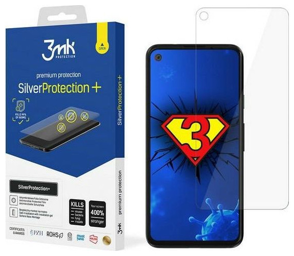 3mk SilverProtection+ Το smartphone σας συλλέγει συνεχώς μικρόβια. Κάθε φορά που ελέγχετε το τηλέφωνό σας, μεταφέρετε μικρόβια από μέρη που έχουν αγγίξει προηγουμένως: λαβές θυρών, κουπαστές, τιμόνι. Αντιμικροβιακό Η αντιμικροβιακή επίστρωση που χρησιμοποιείται στο SilverProtection+ σκοτώνει το 99% των γνωστών ιών, βακτηρίων, μυκήτων και μούχλας. Λειτουργεί 24 ώρες, 7 ημέρες την εβδομάδα. Εξασφαλίζει πλήρη ασφάλεια ακόμα και όταν δεν μπορείτε να εξασφαλίσετε τη σωστή απολύμανση. Είναι το τέλειο συμπλήρωμα για την υγιεινή των smartphone. Απορροφά τις επιπτώσεις Το SilverProtection+ ενισχύει την οθόνη του smartphone έως και 400%. Απίστευτο, σωστά; Η δομή πολλαπλών στρώσεων του φύλλου δημιουργεί, μεταξύ άλλων, ένα αντικρουόμενο υπόστρωμα που ελαχιστοποιεί τον κίνδυνο βλάβης του τηλεφώνου. Η αντικατάσταση της οθόνης μπορεί να είναι δαπανηρή και χρονοβόρα. Φύλαξε τον εαυτό σου αυτό. Άνετο Χωρίς περιττές εισαγωγές - στο SilverProtection+ έχουμε συνδυάσει ό,τι είναι σημαντικό. Το φύλλο είναι τόσο εύκαμπτο που κολλάει σφιχτά και μόνιμα ακόμα και στις πιο κυρτές οθόνες. Το δάχτυλό σας γλιστρά πάνω του όπως σε σκληρυμένο γυαλί! Και το κεράσι στο κέικ: ένα υψηλής ποιότητας ελαιοφοβικό στρώμα που διευκολύνει τη φροντίδα. Το SilverProtection+ που έχει εγκατασταθεί σε υγρή κατάσταση είναι μια σημαντική ανακάλυψη στην εγκατάσταση. Ποτέ δεν ήταν τόσο εύκολο! Μπορείτε να απλώσετε το αλουμινόχαρτο χρησιμοποιώντας ένα ειδικό τζελ που είναι 100% ασφαλές για την οθόνη, το οποίο περιλαμβάνεται στο σετ. Φυσαλίδες αέρα και σωματίδια σκόνης; Ξεχάστε το! Η υγρή εγκατάσταση εγγυάται τέλειο αποτέλεσμα και δεν απαιτεί εμπειρία.{Τύπος} Αλουμινόχαρτο . {Dedicated model} Pixel 4A . {Προορισμός} Για την οθόνη