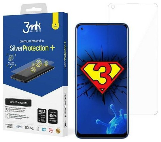 3mk SilverProtection+ Το smartphone σας συλλέγει συνεχώς μικρόβια. Κάθε φορά που ελέγχετε το τηλέφωνό σας, μεταφέρετε μικρόβια από μέρη που έχουν αγγίξει προηγουμένως: λαβές θυρών, κουπαστές, τιμόνι. Αντιμικροβιακό Η αντιμικροβιακή επίστρωση που χρησιμοποιείται στο SilverProtection+ σκοτώνει το 99% των γνωστών ιών, βακτηρίων, μυκήτων και μούχλας. Λειτουργεί 24 ώρες, 7 ημέρες την εβδομάδα. Εξασφαλίζει πλήρη ασφάλεια ακόμα και όταν δεν μπορείτε να εξασφαλίσετε τη σωστή απολύμανση. Είναι το τέλειο συμπλήρωμα για την υγιεινή των smartphone. Απορροφά τις επιπτώσεις Το SilverProtection+ ενισχύει την οθόνη του smartphone έως και 400%. Απίστευτο, σωστά; Η δομή πολλαπλών στρώσεων του φύλλου δημιουργεί, μεταξύ άλλων, ένα αντικρουόμενο υπόστρωμα που ελαχιστοποιεί τον κίνδυνο βλάβης του τηλεφώνου. Η αντικατάσταση της οθόνης μπορεί να είναι δαπανηρή και χρονοβόρα. Διατηρήστε αυτό τον εαυτό σας. Άνετο Χωρίς περιττές εισαγωγές - στο SilverProtection+ έχουμε συνδυάσει ό,τι είναι σημαντικό. Το φύλλο είναι τόσο εύκαμπτο που κολλάει σφιχτά και μόνιμα ακόμα και στις πιο κυρτές οθόνες. Το δάχτυλό σας γλιστρά πάνω του όπως σε σκληρυμένο γυαλί! Και το κεράσι στο κέικ: ένα υψηλής ποιότητας ελαιοφοβικό στρώμα που διευκολύνει τη φροντίδα. Το SilverProtection+ που έχει εγκατασταθεί σε υγρή κατάσταση είναι μια σημαντική ανακάλυψη στην εγκατάσταση. Ποτέ δεν ήταν τόσο εύκολο! Μπορείτε να απλώσετε το αλουμινόχαρτο χρησιμοποιώντας ένα ειδικό τζελ που είναι 100% ασφαλές για την οθόνη, το οποίο περιλαμβάνεται στο σετ. Φυσαλίδες αέρα και σωματίδια σκόνης; Ξεχάστε το! Η υγρή εγκατάσταση εγγυάται τέλειο αποτέλεσμα και δεν απαιτεί εμπειρία.{Τύπος} Αλουμινόχαρτο . {Dedicated model} Realme 7. {Προορισμός} Για την οθόνη