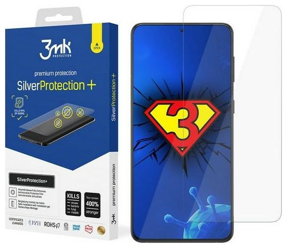 3mk SilverProtection+ Το smartphone σας συλλέγει συνεχώς μικρόβια. Κάθε φορά που ελέγχετε το τηλέφωνό σας, μεταφέρετε μικρόβια από μέρη που έχουν αγγίξει προηγουμένως: λαβές θυρών, κουπαστές, τιμόνι. Αντιμικροβιακό Η αντιμικροβιακή επίστρωση που χρησιμοποιείται στο SilverProtection+ σκοτώνει το 99% των γνωστών ιών, βακτηρίων, μυκήτων και μούχλας. Λειτουργεί 24 ώρες, 7 ημέρες την εβδομάδα. Εξασφαλίζει πλήρη ασφάλεια ακόμα και όταν δεν μπορείτε να εξασφαλίσετε τη σωστή απολύμανση. Είναι το τέλειο συμπλήρωμα για την υγιεινή των smartphone. Απορροφά τις επιπτώσεις Το SilverProtection+ ενισχύει την οθόνη του smartphone έως και 400%. Απίστευτο, σωστά; Η δομή πολλαπλών στρώσεων του φύλλου δημιουργεί, μεταξύ άλλων, ένα αντικρουόμενο υπόστρωμα που ελαχιστοποιεί τον κίνδυνο βλάβης του τηλεφώνου. Η αντικατάσταση της οθόνης μπορεί να είναι δαπανηρή και χρονοβόρα. Διατηρήστε αυτό τον εαυτό σας. Άνετο Χωρίς περιττές εισαγωγές - στο SilverProtection+ έχουμε συνδυάσει ό,τι είναι σημαντικό. Το φύλλο είναι τόσο εύκαμπτο που κολλάει σφιχτά και μόνιμα ακόμα και στις πιο κυρτές οθόνες. Το δάχτυλό σας γλιστρά πάνω του όπως σε σκληρυμένο γυαλί! Και το κεράσι στο κέικ: ένα υψηλής ποιότητας ελαιοφοβικό στρώμα που διευκολύνει τη φροντίδα. Το SilverProtection+ που έχει εγκατασταθεί σε υγρή κατάσταση είναι μια σημαντική ανακάλυψη στην εγκατάσταση. Ποτέ δεν ήταν τόσο εύκολο! Μπορείτε να απλώσετε το αλουμινόχαρτο χρησιμοποιώντας ένα ειδικό τζελ που είναι 100% ασφαλές για την οθόνη, το οποίο περιλαμβάνεται στο σετ. Φυσαλίδες αέρα και σωματίδια σκόνης; Ξεχάστε το! Η υγρή εγκατάσταση εγγυάται τέλειο αποτέλεσμα και δεν απαιτεί εμπειρία.{Τύπος} Αλουμινόχαρτο . {Dedicated model} Galaxy S21 Plus. {Προορισμός} Για την οθόνη