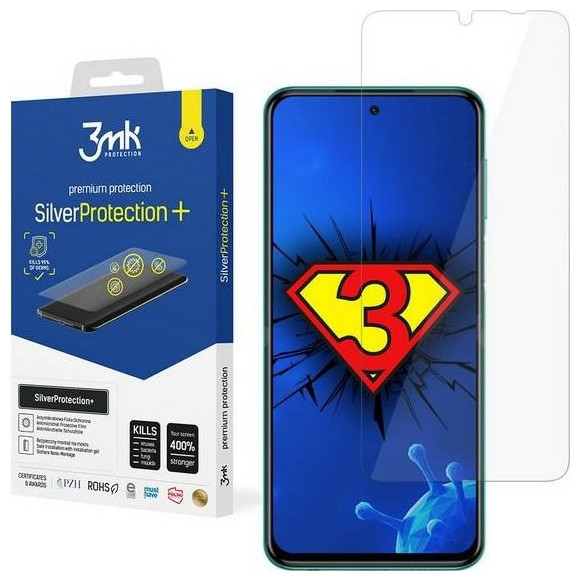 3mk SilverProtection+ Το smartphone σας συλλέγει συνεχώς μικρόβια. Κάθε φορά που ελέγχετε το τηλέφωνό σας, μεταφέρετε μικρόβια από μέρη που έχουν αγγίξει προηγουμένως: λαβές θυρών, κουπαστές, τιμόνι. Αντιμικροβιακό Η αντιμικροβιακή επίστρωση που χρησιμοποιείται στο SilverProtection+ σκοτώνει το 99% των γνωστών ιών, βακτηρίων, μυκήτων και μούχλας. Λειτουργεί 24 ώρες, 7 ημέρες την εβδομάδα. Εξασφαλίζει πλήρη ασφάλεια ακόμα και όταν δεν μπορείτε να εξασφαλίσετε τη σωστή απολύμανση. Είναι το τέλειο συμπλήρωμα για την υγιεινή των smartphone. Απορροφά τις επιπτώσεις Το SilverProtection+ ενισχύει την οθόνη του smartphone έως και 400%. Απίστευτο, σωστά; Η δομή πολλαπλών στρώσεων του φύλλου δημιουργεί, μεταξύ άλλων, ένα αντικρουόμενο υπόστρωμα που ελαχιστοποιεί τον κίνδυνο βλάβης του τηλεφώνου. Η αντικατάσταση της οθόνης μπορεί να είναι δαπανηρή και χρονοβόρα. Διατηρήστε αυτό τον εαυτό σας. Άνετο Χωρίς περιττές εισαγωγές - στο SilverProtection+ έχουμε συνδυάσει ό,τι είναι σημαντικό. Το φύλλο είναι τόσο εύκαμπτο που κολλάει σφιχτά και μόνιμα ακόμα και στις πιο κυρτές οθόνες. Το δάχτυλό σας γλιστρά πάνω του όπως σε σκληρυμένο γυαλί! Και το κεράσι στο κέικ: ένα υψηλής ποιότητας ελαιοφοβικό στρώμα που διευκολύνει τη φροντίδα. Το SilverProtection+ που έχει εγκατασταθεί σε υγρή κατάσταση είναι μια σημαντική ανακάλυψη στην εγκατάσταση. Ποτέ δεν ήταν τόσο εύκολο! Μπορείτε να απλώσετε το αλουμινόχαρτο χρησιμοποιώντας ένα ειδικό τζελ που είναι 100% ασφαλές για την οθόνη, το οποίο περιλαμβάνεται στο σετ. Φυσαλίδες αέρα και σωματίδια σκόνης; Ξεχάστε το! Η υγρή εγκατάσταση εγγυάται τέλειο αποτέλεσμα και δεν απαιτεί εμπειρία.{Τύπος} Αλουμινόχαρτο . {Dedicated model} Redmi Note 8T. {Προορισμός} Για την οθόνη