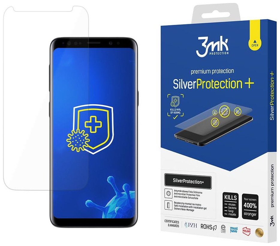 3mk SilverProtection+ Το smartphone σας συλλέγει συνεχώς μικρόβια. Κάθε φορά που ελέγχετε το τηλέφωνό σας, μεταφέρετε μικρόβια από μέρη που έχουν αγγίξει προηγουμένως: λαβές θυρών, κουπαστές, τιμόνι. Αντιμικροβιακό Η αντιμικροβιακή επίστρωση που χρησιμοποιείται στο SilverProtection+ σκοτώνει το 99% των γνωστών ιών, βακτηρίων, μυκήτων και μούχλας. Λειτουργεί 24 ώρες, 7 ημέρες την εβδομάδα. Εξασφαλίζει πλήρη ασφάλεια ακόμα και όταν δεν μπορείτε να εξασφαλίσετε τη σωστή απολύμανση. Είναι το τέλειο συμπλήρωμα για την υγιεινή των smartphone. Απορροφά τις επιπτώσεις Το SilverProtection+ ενισχύει την οθόνη του smartphone έως και 400%. Απίστευτο, σωστά; Η δομή πολλαπλών στρώσεων του φύλλου δημιουργεί, μεταξύ άλλων, ένα αντικρουόμενο υπόστρωμα που ελαχιστοποιεί τον κίνδυνο βλάβης του τηλεφώνου. Η αντικατάσταση της οθόνης μπορεί να είναι δαπανηρή και χρονοβόρα. Φύλαξε τον εαυτό σου αυτό. Άνετο Χωρίς περιττές εισαγωγές - στο SilverProtection+ έχουμε συνδυάσει ό,τι είναι σημαντικό. Το φύλλο είναι τόσο εύκαμπτο που κολλάει σφιχτά και μόνιμα ακόμα και στις πιο κυρτές οθόνες. Το δάχτυλό σας γλιστρά πάνω του όπως σε σκληρυμένο γυαλί! Και το κεράσι στο κέικ: ένα υψηλής ποιότητας ελαιοφοβικό στρώμα που διευκολύνει τη φροντίδα. Το SilverProtection+ που έχει εγκατασταθεί σε υγρή κατάσταση είναι μια σημαντική ανακάλυψη στην εγκατάσταση. Ποτέ δεν ήταν τόσο εύκολο! Μπορείτε να απλώσετε το αλουμινόχαρτο χρησιμοποιώντας ένα ειδικό τζελ που είναι 100% ασφαλές για την οθόνη, το οποίο περιλαμβάνεται στο σετ. Φυσαλίδες αέρα και σωματίδια σκόνης; Ξεχάστε το! Η υγρή εγκατάσταση εγγυάται τέλειο αποτέλεσμα και δεν απαιτεί εμπειρία.{Type} Γυαλί . {Dedicated model} Galaxy S9 . {Προορισμός} Για την οθόνη