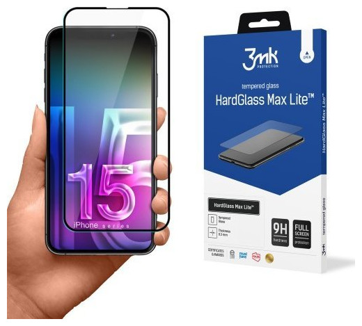 3MK HardGlass Max Lite Black iPhone 15 Pro{Type} Γυαλί . {Προορισμός} Για την οθόνη . {Dedicated model} iPhone 15 Pro