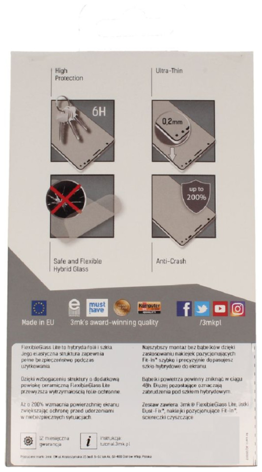3MK FLEXIBLE GLASS LITENΥψηλής ποιότητας, μοντέρνο εύκαμπτο προστατευτικό γυαλί. Επιβεβαιώθηκε από δοκιμές, πραγματική αντοχή στις γρατσουνιές 6Η. Παρόλα αυτά, το γυαλί είναι σχεδόν αόρατο επειδή το πάχος του είναι μόνο 0,2 mm. Η ειδική τεχνολογία κατασκευής το καθιστά αόρατο όταν χρησιμοποιείται σε καθημερινή βάση, εξασφαλίζοντας έτσι καλή ολίσθηση και υψηλή άνεση χρήσης. Το σετ περιλαμβάνει επίσης όλα τα απαραίτητα εξαρτήματα για γρήγορη και εύκολη συναρμολόγηση χωρίς φυσαλίδες ΧΑΡΑΚΤΗΡΙΣΤΙΚΑ ΠΡΟΪΟΝΤΟΣ: - 100% πρωτότυπο - Εξαιρετικά λεπτό - Υψηλή αντοχή σε μηχανικές βλάβες - Ανθεκτικό στη βρωμιά - Εύκολη εγκατάσταση ΤΟ ΣΕΤ ΠΕΡΙΛΑΜΒΑΝΕΙ: - 1 x 3MK Ευέλικτο. Glass LITE - πανί που δεν αφήνει χνούδι - βρεγμένο πανί - εξειδικευμένη κάρτα κατά των φυσαλίδων{Αριθμός τεμαχίων στη συσκευασία} 1 . {Αριθμός τεμαχίων στη συσκευασία} 1 . {Αριθμός τεμαχίων στη συσκευασία} 1 . {Περιλαμβάνονται αξεσουάρ} Προστατευτικό κρύσταλλο. {Περιλαμβάνονται αξεσουάρ} Προστατευτικό κρύσταλλο. {Περιλαμβάνονται αξεσουάρ} Προστατευτικό κρύσταλλο. {Περιλαμβάνονται αξεσουάρ} Υγρό πανί. {Περιλαμβάνονται αξεσουάρ} Υγρό πανί. {Περιλαμβάνονται αξεσουάρ} Υγρό πανί. {Type} Γυαλί . {Type} Γυαλί . {Type} Γυαλί . {Περιλαμβανόμενα αξεσουάρ} Πανί χωρίς σκόνη. {Περιλαμβανόμενα αξεσουάρ} Πανί χωρίς σκόνη. {Περιλαμβανόμενα αξεσουάρ} Πανί χωρίς σκόνη. {Περιλαμβάνονται αξεσουάρ} Εξειδικευμένη κάρτα κατά των φυσαλίδων. {Περιλαμβάνονται αξεσουάρ} Εξειδικευμένη κάρτα κατά των φυσαλίδων. {Περιλαμβάνονται αξεσουάρ} Εξειδικευμένη κάρτα κατά των φυσαλίδων. {Dedicated model} P20 Pro . {Dedicated model} P20 Pro . {Dedicated model} P20 Pro . {Προορισμός} Για την οθόνη . {Προορισμός} Για την οθόνη . {Προορισμός} Για την οθόνη