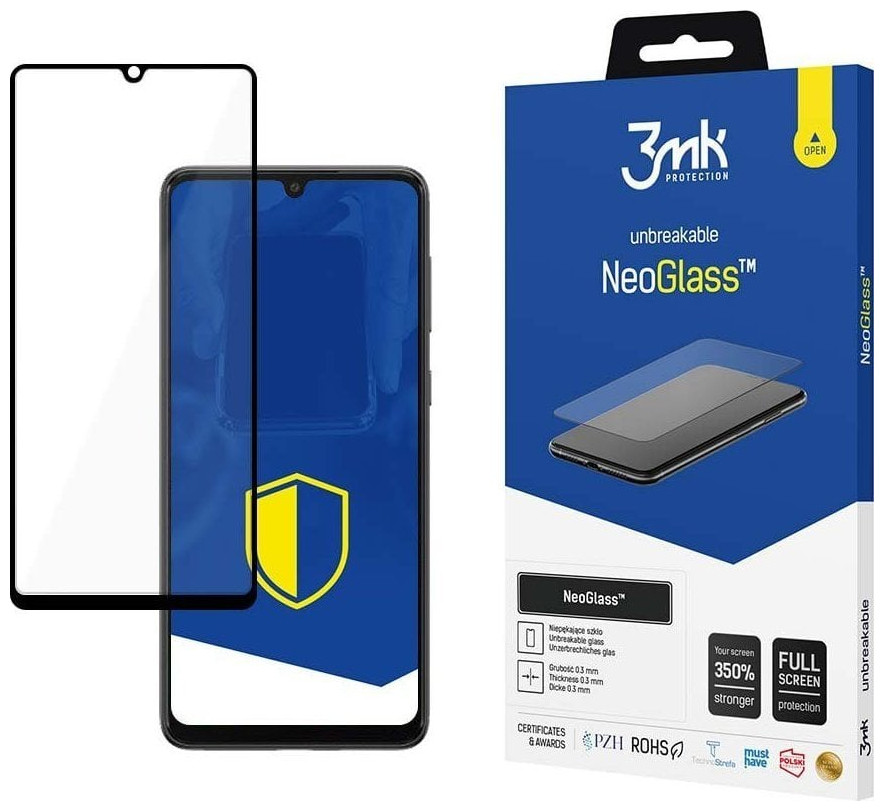 3mk NeoGlass Όταν πέσει, το NeoGlass δεν σπάει σε πολλά αιχμηρά κομμάτια. Όχι άλλες οδοντωτές άκρες και ρωγμές που σας εμποδίζουν να χρησιμοποιήσετε το τηλέφωνό σας. Αυξημένη αντοχή στην κρούση Το NeoGlass απορροφά την ενέργεια κρούσης και ενισχύει την οθόνη έως και 350%. Ψάχνετε για ένα προϊόν που θα καλύπτει ολόκληρη την οθόνη; Θα προστατεύσει ολόκληρο τον μπροστινό πίνακα του τηλεφώνου σας. Οι τέλεια λειασμένες άκρες θα σας κάνουν να το ξεχάσετε. Προστατέψτε το τηλέφωνό σας από γρατσουνιές Το NeoGlass έχει αντοχή στις γρατσουνιές 8H. Θα προστατεύσει αποτελεσματικά το τηλέφωνό σας από γρατσουνιές.{Type} Γυαλί . {Dedicated model} Galaxy A33 5G . {Προορισμός} Για την οθόνη