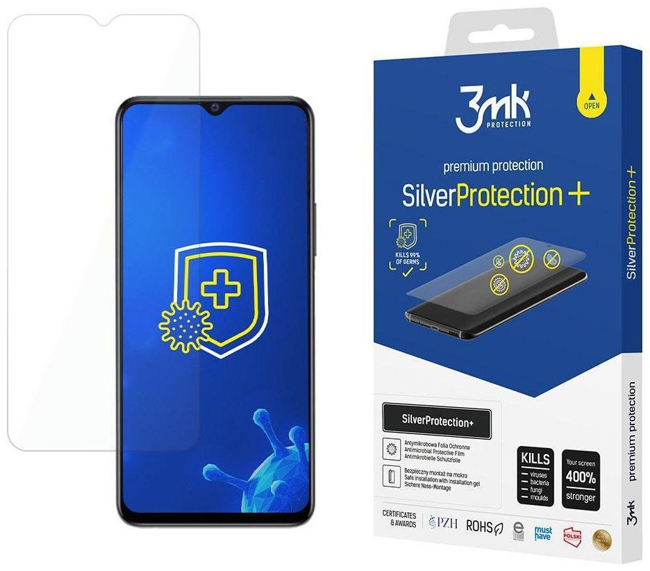 3mk SilverProtection+ Το smartphone σας συλλέγει συνεχώς μικρόβια. Κάθε φορά που ελέγχετε το τηλέφωνό σας, μεταφέρετε μικρόβια από μέρη που έχουν αγγίξει προηγουμένως: λαβές θυρών, κουπαστές, τιμόνι. Αντιμικροβιακό Η αντιμικροβιακή επίστρωση που χρησιμοποιείται στο SilverProtection+ σκοτώνει το 99% των γνωστών ιών, βακτηρίων, μυκήτων και μούχλας. Λειτουργεί 24 ώρες, 7 ημέρες την εβδομάδα. Εξασφαλίζει πλήρη ασφάλεια ακόμα και όταν δεν μπορείτε να εξασφαλίσετε τη σωστή απολύμανση. Είναι το τέλειο συμπλήρωμα για την υγιεινή των smartphone. Απορροφά τις επιπτώσεις Το SilverProtection+ ενισχύει την οθόνη του smartphone έως και 400%. Απίστευτο, σωστά; Η δομή πολλαπλών στρώσεων του φύλλου δημιουργεί, μεταξύ άλλων, ένα αντικρουόμενο υπόστρωμα που ελαχιστοποιεί τον κίνδυνο βλάβης του τηλεφώνου. Η αντικατάσταση της οθόνης μπορεί να είναι δαπανηρή και χρονοβόρα. Φύλαξε τον εαυτό σου αυτό. Άνετο Χωρίς περιττές εισαγωγές - στο SilverProtection+ έχουμε συνδυάσει ό,τι είναι σημαντικό. Το φύλλο είναι τόσο εύκαμπτο που κολλάει σφιχτά και μόνιμα ακόμα και στις πιο κυρτές οθόνες. Το δάχτυλό σας γλιστρά πάνω του όπως σε σκληρυμένο γυαλί! Και το κεράσι στο κέικ: ένα υψηλής ποιότητας ελαιοφοβικό στρώμα που διευκολύνει τη φροντίδα. Το SilverProtection+ που έχει εγκατασταθεί σε υγρή κατάσταση είναι μια σημαντική ανακάλυψη στην εγκατάσταση. Ποτέ δεν ήταν τόσο εύκολο! Μπορείτε να απλώσετε το αλουμινόχαρτο χρησιμοποιώντας ένα ειδικό τζελ που είναι 100% ασφαλές για την οθόνη, το οποίο περιλαμβάνεται στο σετ. Φυσαλίδες αέρα και σωματίδια σκόνης; Ξεχάστε το! Η υγρή εγκατάσταση εγγυάται τέλειο αποτέλεσμα και δεν απαιτεί εμπειρία.{Τύπος} Αλουμινόχαρτο . {Προορισμός} Για την οθόνη . {Dedicated model} Vivo Y52