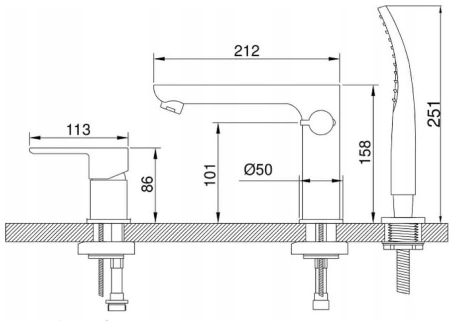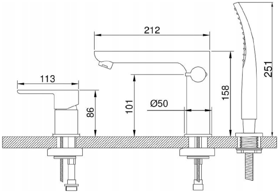 Μπαταρία μπανιέρας Sourcing 3- HOLE BATH TUB MIXER SIROS CHROME