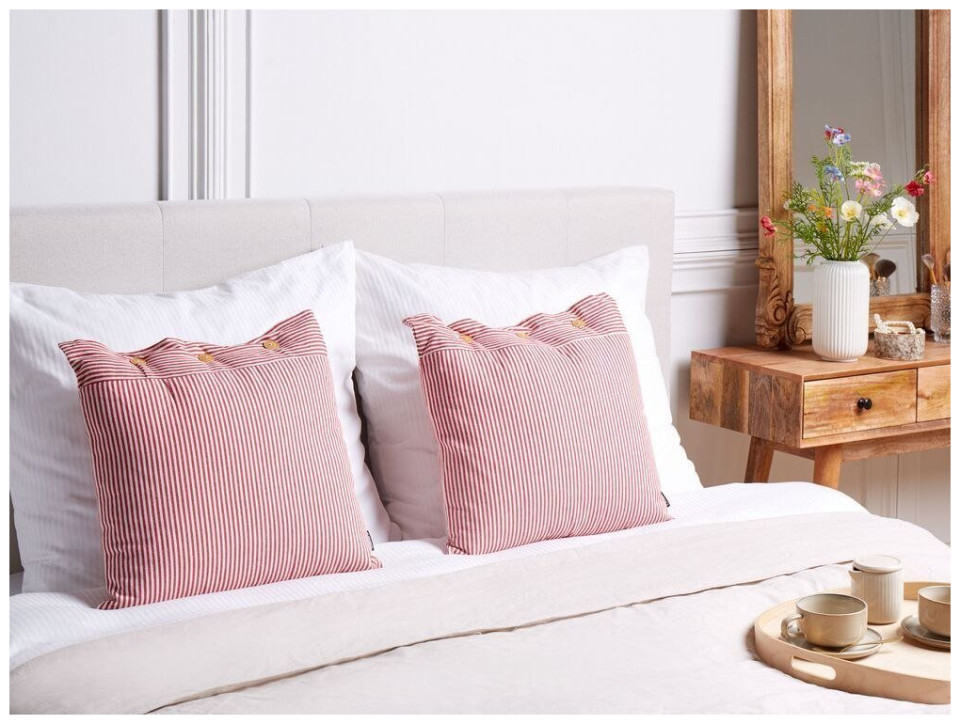 Beliani 2 ριγέ βαμβακερά διακοσμητικά μαξιλάρια 45 x 45 cm κόκκινο και λευκό AALITA Lumarko! 13562829 4255664859730