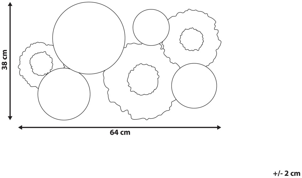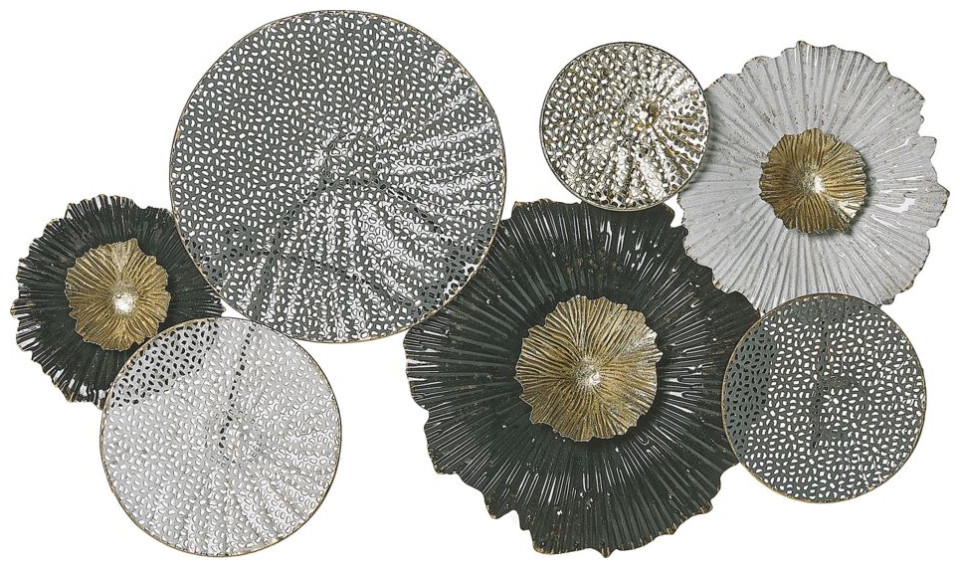Αυτή η λεπτή, αλλά συμπαγής διακόσμηση τοίχου από μέταλλο θα είναι μια τέλεια προσθήκη σε βιομηχανικούς και μοντέρνους εσωτερικούς χώρους. Κύκλοι σε μαύρο, ασημί, χρυσό και λευκό δημιουργούν μια μοναδική τρισδιάστατη σύνθεση που, χάρη στο ακανόνιστο σχήμα της, θα προσθέσει στυλ και χαρακτήρα σε κάθε σπίτι. Ύψος: 64