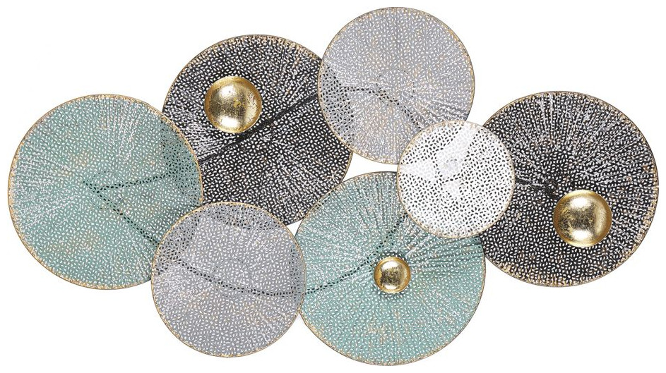 Μια μοντέρνα διακόσμηση τοίχου που είναι μια τέλεια προσθήκη σε κάθε εσωτερικό ρετρό στυλ. Είναι κατασκευασμένο από υψηλής ποιότητας μέταλλο και φινίρισμα σε λεπτές αποχρώσεις του μπλε, γκρι, μαύρου, λευκού και χρυσού. Με τη μοναδική του γοητεία, θα εμπλουτίσει το σαλόνι, το υπνοδωμάτιο ή την τραπεζαρία σας. Ύψος: 49