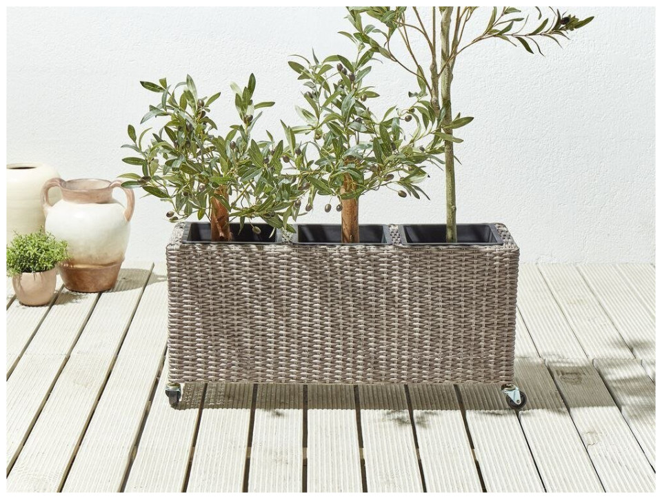 Γλάστρα με ρόδες από τεχνητό ρατάν καφέ BELLIS Lumarko!