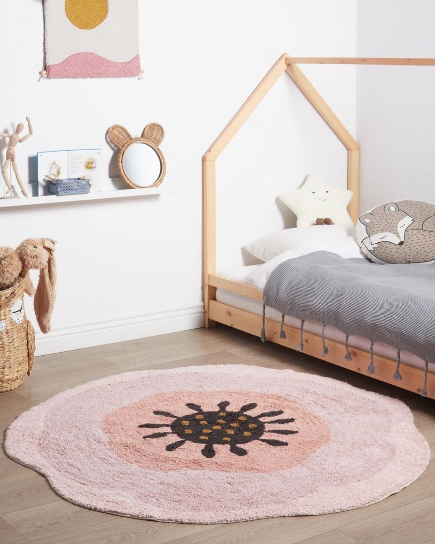 Beliani Στρογγυλό βαμβακερό χαλί ø 140 cm ροζ KHARAT Lumarko!