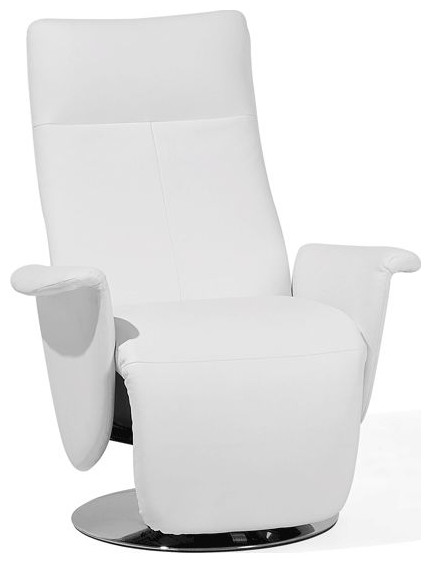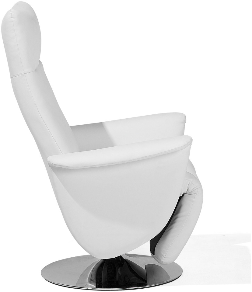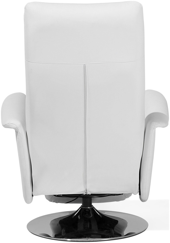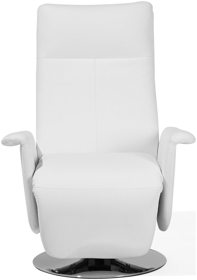 Komfortowy fotel o niezwykle eleganckim wyglądzie. Posiada prostą w obsłudze regulację oraz bardzo wygodny, ergonomiczny podnóżek. Jego łatwa w pielęgnacji, biała tapicerka ze skóry ekologicznej podkreśla jego klasyczny wygląd i sprawia, że będzie stylowym dodatkiem w każdym salonie. Wysokość: 110