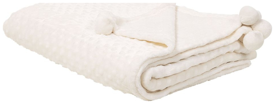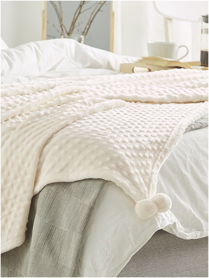 Μια ζεστή και άνετη κουβέρτα θα είναι μια εξαιρετική προσθήκη που θα προσθέσει άνεση σε κάθε εσωτερικό χώρο. Κατασκευασμένο από ευχάριστο στην αφή υλικό με δομή ελαφρώς κυρτών κουκκίδων, διαθέτει διακοσμητικά πομπόν που προσθέτουν εξαιρετική γοητεία σε αυτό. Μια πρακτική και διακοσμητική κουβέρτα, μπορεί να χρησιμοποιηθεί και ως κάλυμμα κρεβατιού ή καναπέ. Ύψος: 2