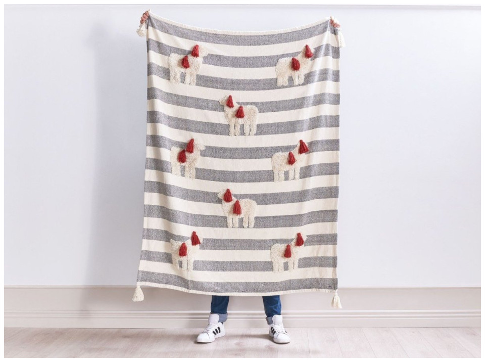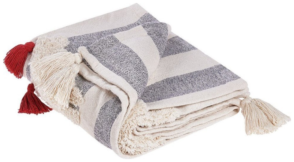 Beliani Βαμβακερή κουβέρτα 125 x 150 cm λευκό και γκρι NAMTAR Lumarko! 12937384 4255664824981