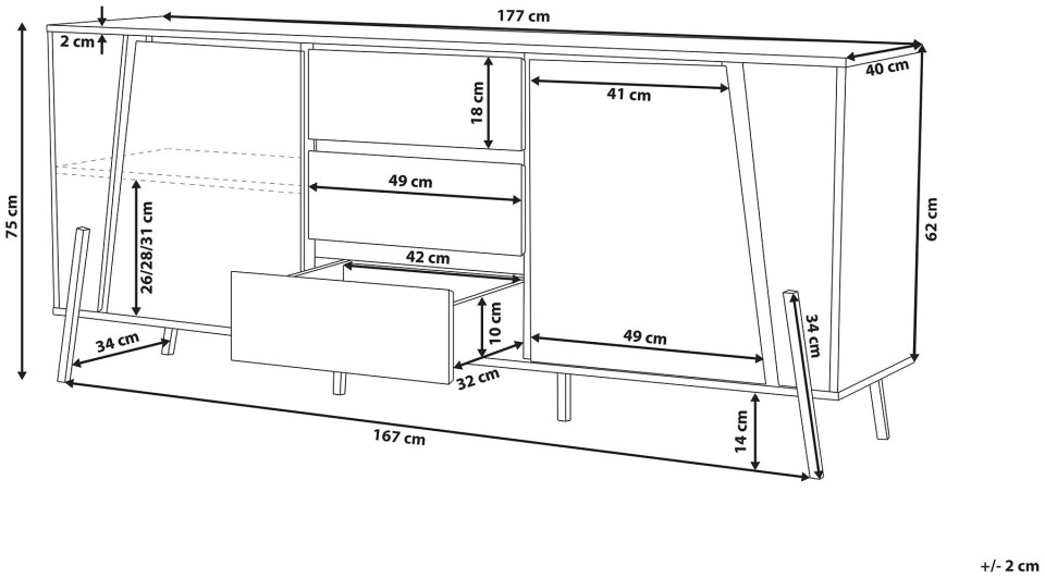 Αυτό το ντουλάπι δεν είναι μόνο πρακτικό, αλλά πάνω απ' όλα είναι εξαιρετικά κομψό. Τα πόδια του με βαφή πούδρας έρχονται σε όμορφη αντίθεση με τη σανίδα που μιμείται το ξύλο, δίνοντάς του μια μοντέρνα εμφάνιση. Τρία συρτάρια και ντουλάπια που κλειδώνουν είναι ένα ιδανικό μέρος για να κρύψετε έγγραφα, εξοπλισμό πολυμέσων και άλλα αντικείμενα. Ύψος: 75 Πλάτος: 177 Βάθος: 40 Βάρος: 59,9 Υλικό: Νοοπάν{Χρώμα} Καφέ . {Χρώμα} Καφέ . {Χρώμα} Καφέ . {Χρώμα} Καφέ . {Χρώμα} Καφέ . {Material} Πίνακας επίπλων. {Material} Πίνακας επίπλων. {Material} Πίνακας επίπλων. {Material} Πίνακας επίπλων. {Material} Πίνακας επίπλων. {Ύψος [cm]} 75 . {Ύψος [cm]} 75 . {Ύψος [cm]} 75 . {Ύψος [cm]} 75 . {Ύψος [cm]} 75 . {Width [cm]} 177 . {Width [cm]} 177 . {Width [cm]} 177 . {Width [cm]} 177 . {Width [cm]} 177 . {Type} Συρταριέρα. {Type} Συρταριέρα. {Type} Συρταριέρα. {Type} Συρταριέρα. {Type} Συρταριέρα