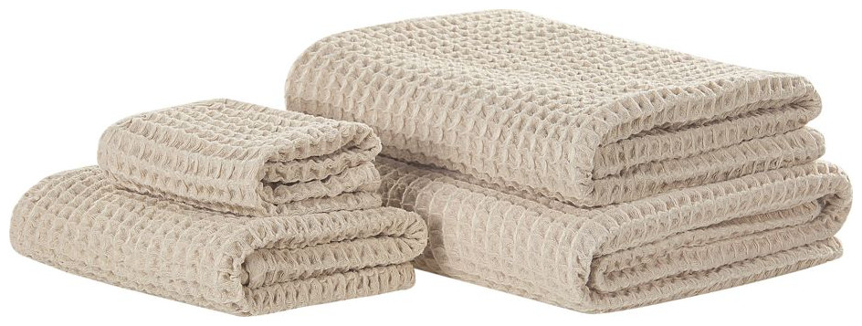 Ten zestaw wyjątkowo miękkich i puszystych ręczników to najlepszy wybór do twojej łazienki. Zawiera wszystko, czego możesz potrzebować: ręcznik dla gości, ręcznik do rąk, ręczniki kąpielowy i ręcznik plażowy. Wytłaczana faktura jest przyjemna w dotyku i dodaje atrakcyjności wizualnej. Wykonane z wysokiej jakości bawełny z wykorzystaniem długich włókien ręczniki są delikatne dla skóry i idealne do codziennego użytku. Niski skręt włókien zapewnia wysoką chłonność i szybkie schnięcie. Wysokość: 1