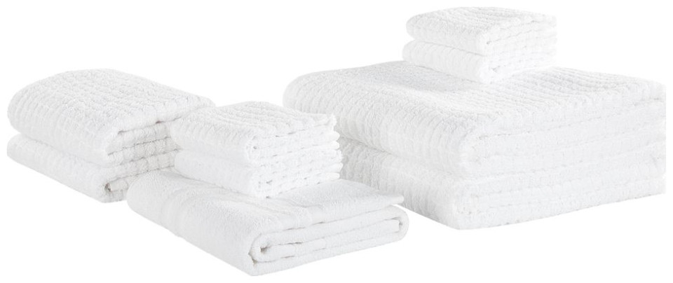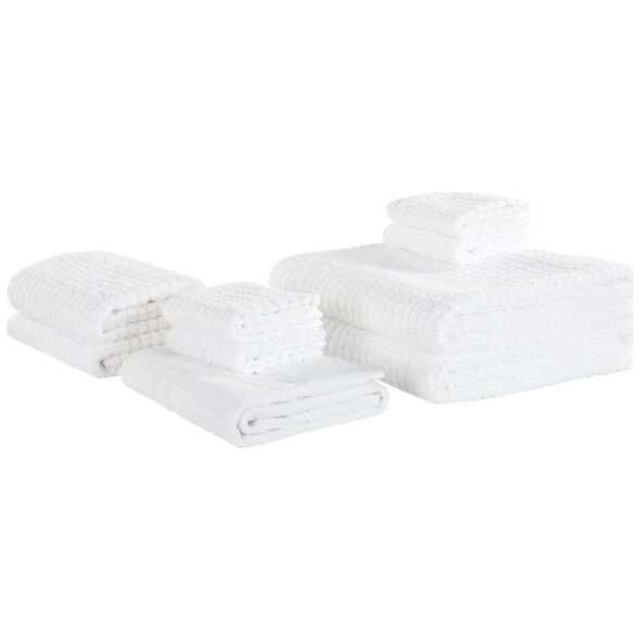 Αυτό το σετ πετσετών βάφλας είναι σίγουρο ότι θα γίνει αγαπημένο αξεσουάρ στο μπάνιο σας. Η ανάγλυφη υφή τους δίνει μια πολυτελή εμφάνιση, καθιστώντας τα τις τέλειες πετσέτες επισκεπτών. Οι πυκνές ίνες που συνδέονται με την τεχνική zero-twist είναι υπέροχα μαλακές και λεπτές. Η πετσέτα απομακρύνει γρήγορα την υγρασία από το δέρμα και στεγνώνει γρήγορα. Το σετ περιλαμβάνει πετσέτες επισκεπτών, πετσέτες χεριών, πετσέτες μπάνιου και χαλάκι μπάνιου. Ύψος: 1