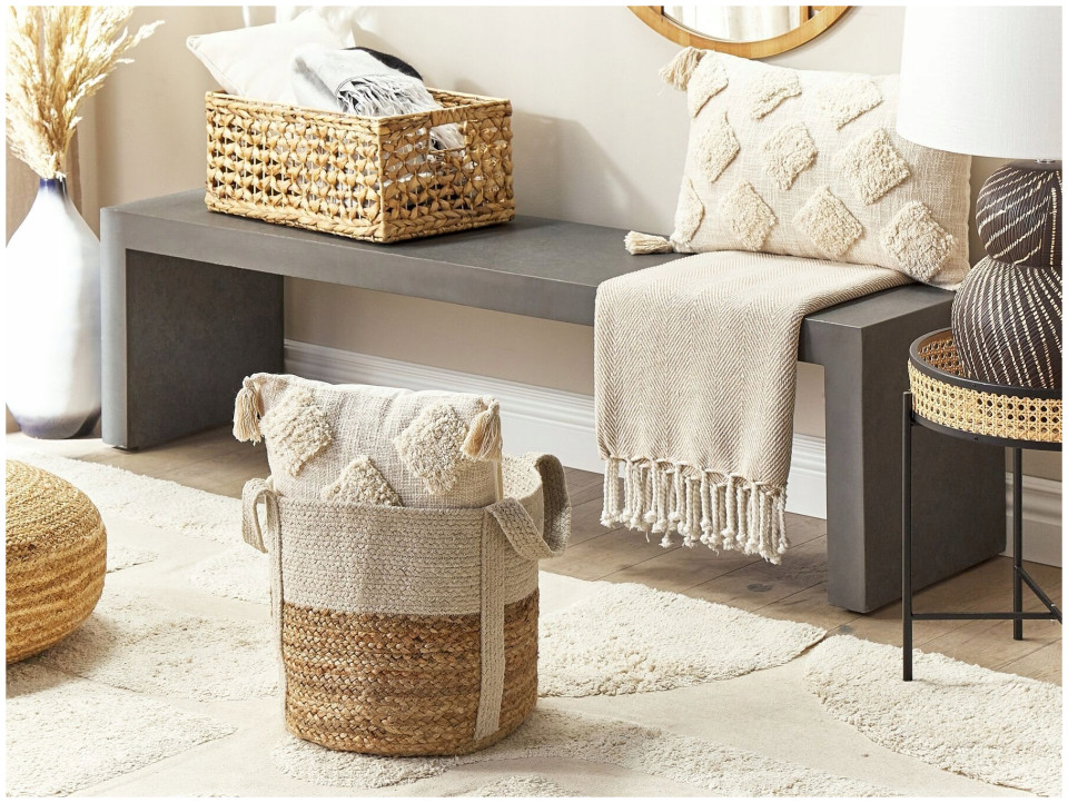 Καλάθι από γιούτα σε μπεζ-λευκό SONIPAT Lumarko!