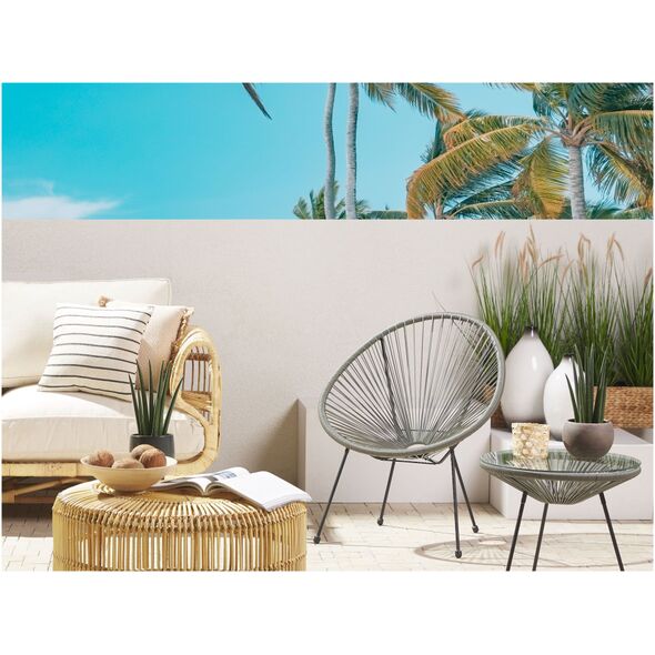 Μια καρέκλα εμπνευσμένη από το μεξικάνικο στυλ είναι μια εξαιρετική προσθήκη τόσο στο εσωτερικό όσο και στη βεράντα ή στον κήπο. Το ευρύχωρο, στρογγυλό κάθισμα είναι κατασκευασμένο από ανθεκτικό, συνθετικό μπαστούνι, που ταιριάζει τέλεια με το μαύρο μεταλλικό σκελετό. Μια άνετη και σταθερή καρέκλα που θα λειτουργήσει καλά σε κάθε μοντέρνα και παραδοσιακή διάταξη. Ύψος: 87