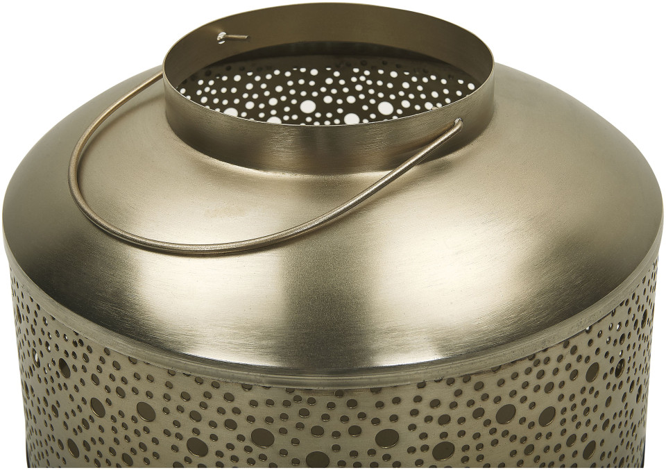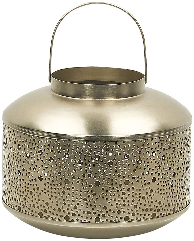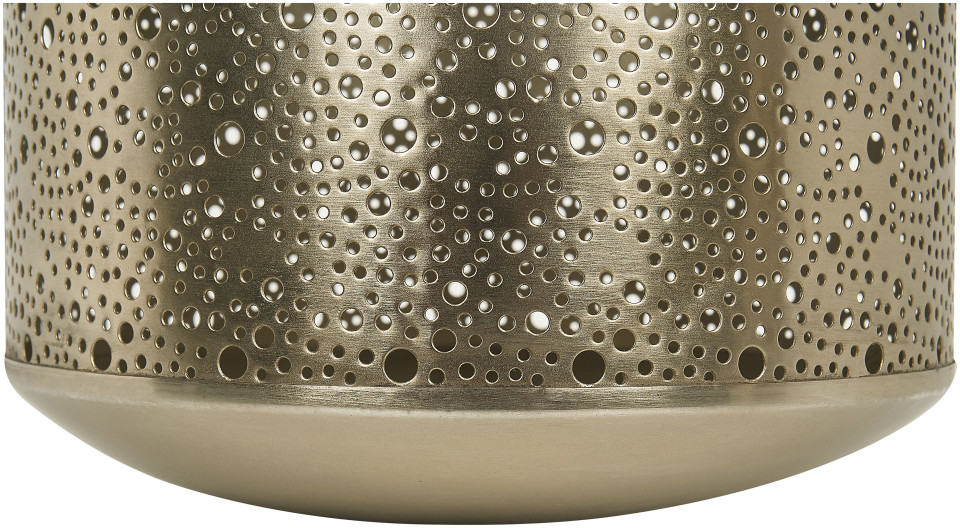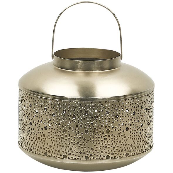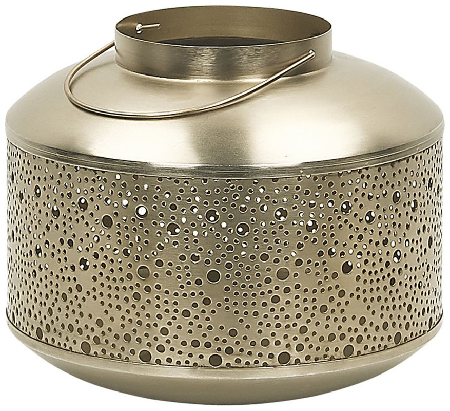 Ένα φανάρι που θα προσθέσει μια λεπτή vintage προφορά είναι μια τέλεια προσθήκη σε κάθε εσωτερικό εμπνευσμένο από το λαμπερό ή μοντέρνο στυλ. Είναι κατασκευασμένο από ατσάλι και φινίρισμα σε χρυσό, χάρη στο οποίο θα διακοσμήσει το σαλόνι, το υπνοδωμάτιο ή το χολ σας με μια νότα κομψότητας. Όταν συνδυάζεται με ένα κερί ή άλλη πηγή φωτός, το φανάρι ρίχνει μια όμορφη σκιά χάρη στη διάτρητη επιφάνειά του. Ύψος: 22