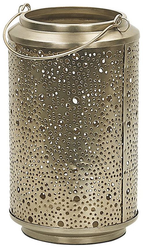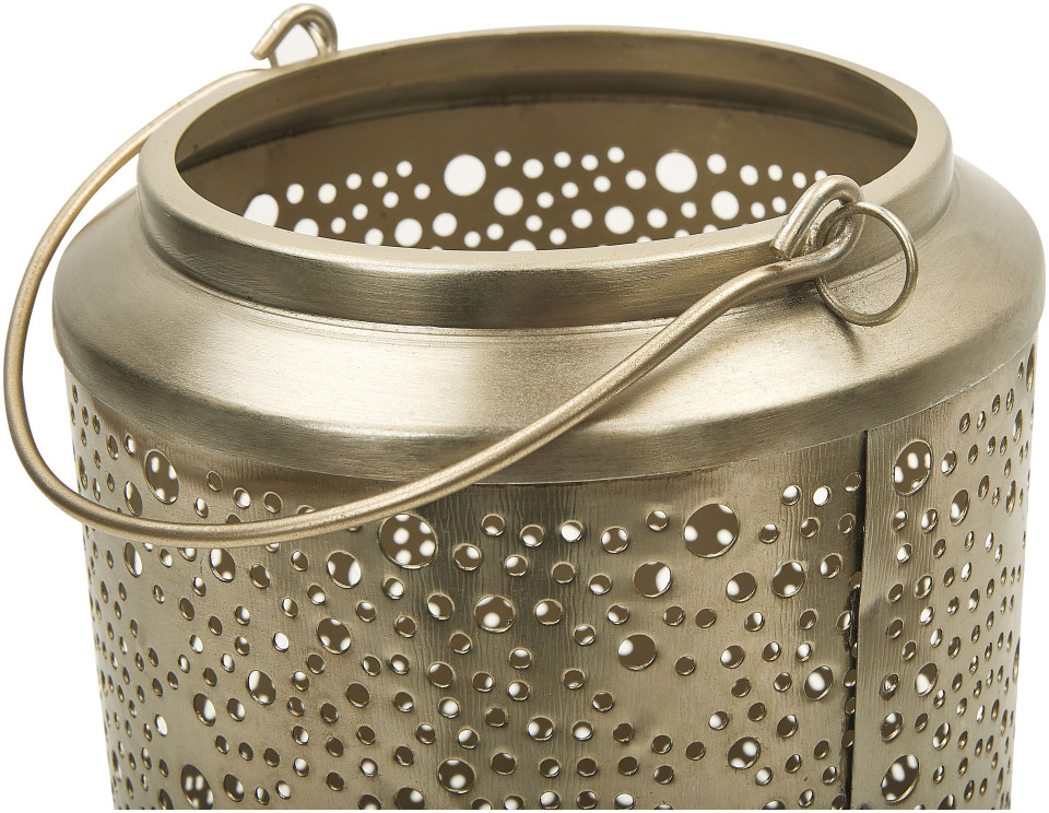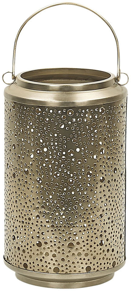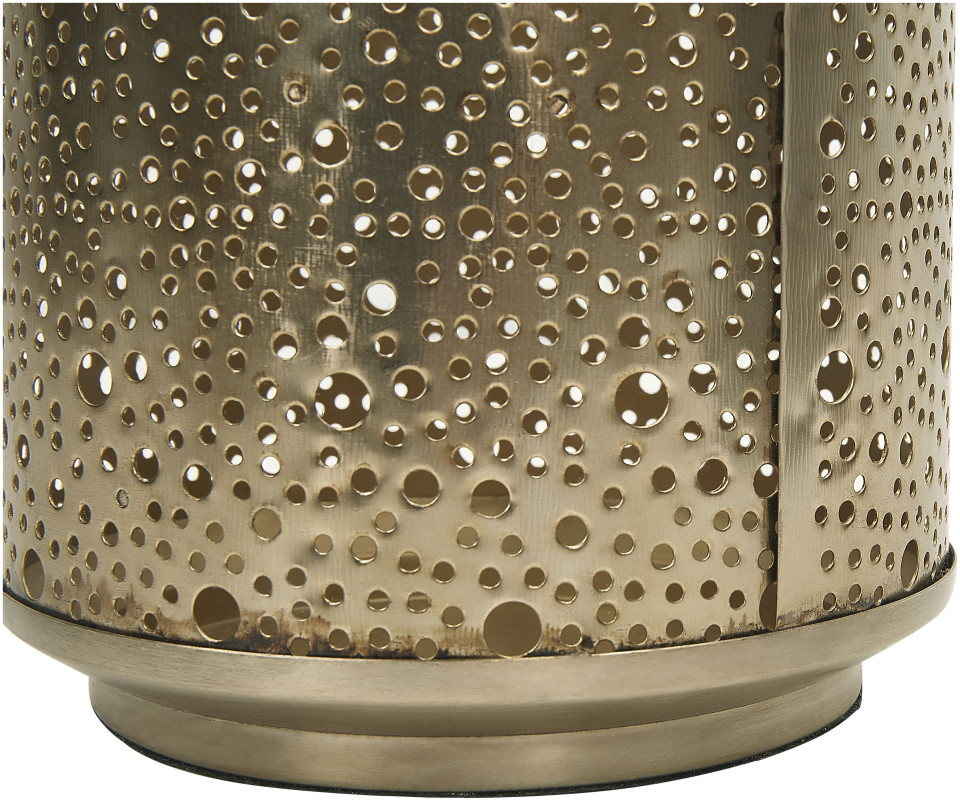 Ένα φανάρι που θα προσθέσει μια λεπτή vintage προφορά είναι μια τέλεια προσθήκη σε κάθε εσωτερικό εμπνευσμένο από το λαμπερό ή μοντέρνο στυλ. Είναι κατασκευασμένο από ατσάλι και φινίρισμα σε χρυσό, χάρη στο οποίο θα διακοσμήσει το σαλόνι, το υπνοδωμάτιο ή το χολ σας με μια νότα κομψότητας. Όταν συνδυάζεται με ένα κερί ή άλλη πηγή φωτός, το φανάρι ρίχνει μια όμορφη σκιά χάρη στη διάτρητη επιφάνειά του. Ύψος: 25