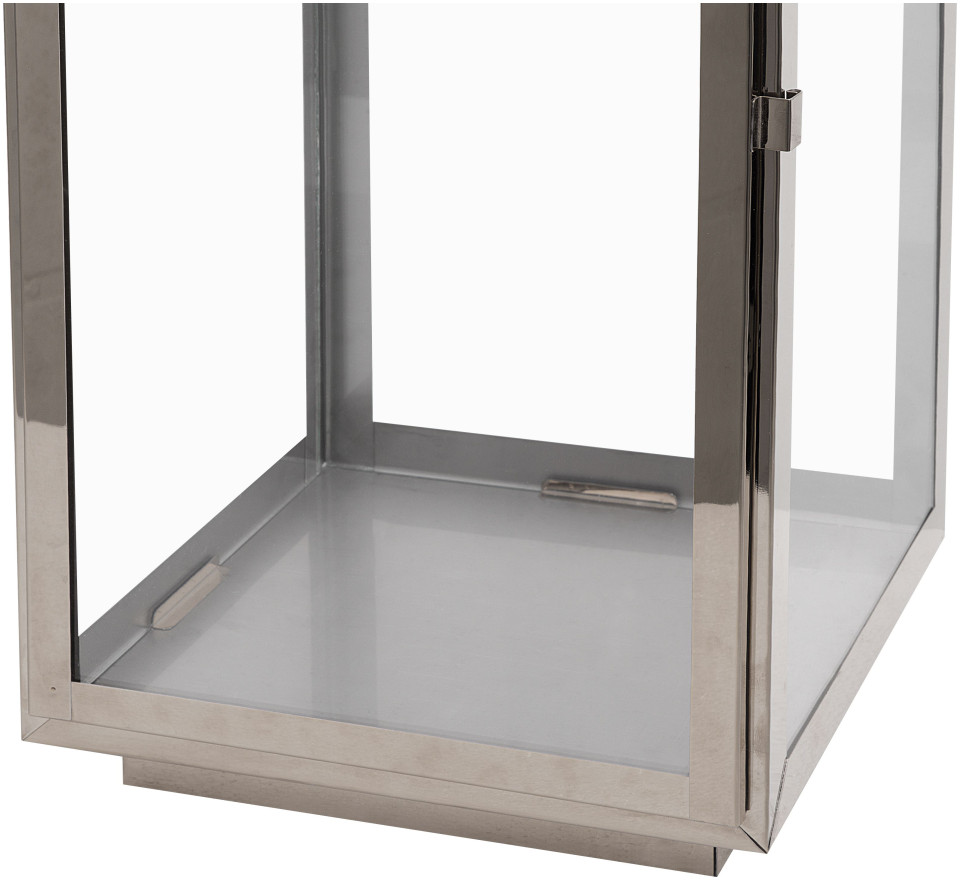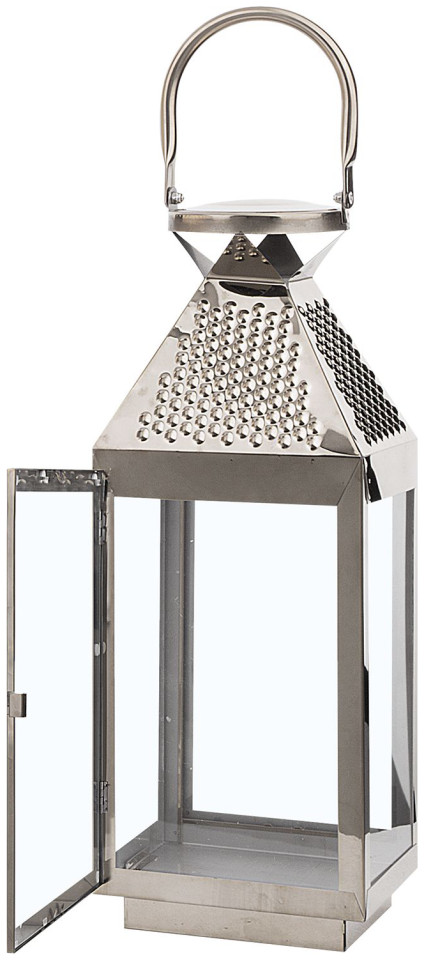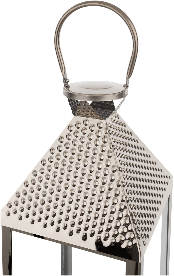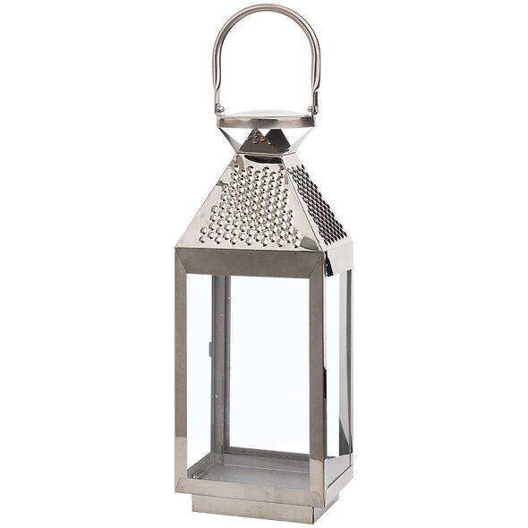 Το παρουσιαζόμενο φανάρι είναι κατασκευασμένο από μέταλλο σε ασημί χρώμα και γυαλί, ώστε να μπορεί να χρησιμοποιηθεί τόσο σε εσωτερικούς όσο και σε εξωτερικούς χώρους. Γεμίζοντάς το με κεριά, φωτάκια LED ή διακοσμητικά αξεσουάρ, θα δημιουργήσετε μια όμορφη διακόσμηση με cozy χαρακτήρα. Λόγω της τέλειας εμφάνισής του, το φανάρι φαίνεται υπέροχο ακόμα και όταν είναι άδειο, επομένως μπορεί να χρησιμοποιηθεί ως διακοσμητικό απευθείας από το κουτί του. Ύψος: 40