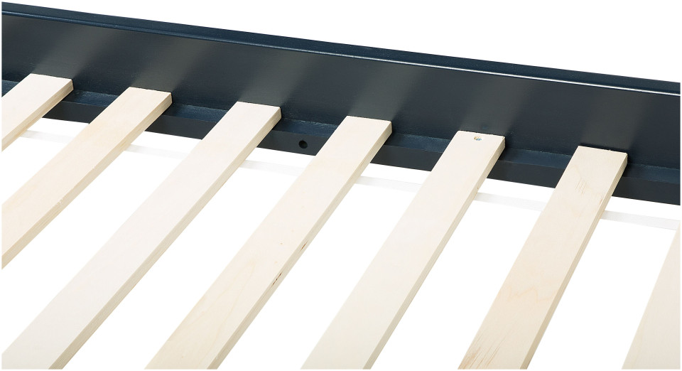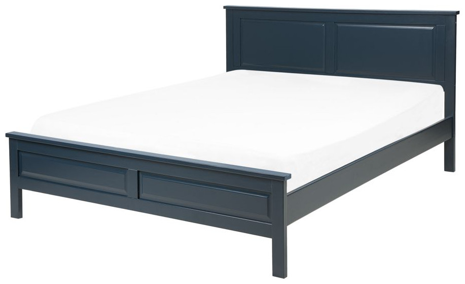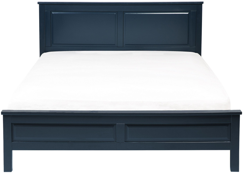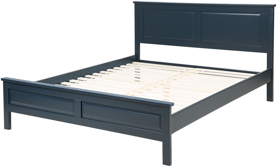 Η απλή φόρμα τονίζει τη διαχρονική ομορφιά του παρουσιαζόμενου διπλού κρεβατιού. Το ευρύχωρο κεφαλάρι και το κλασικό πλαίσιο σε σκούρο μπλε χρώμα δίνουν στο κρεβάτι μια πρωτότυπη, ρουστίκ εμφάνιση με μια νότα μοντέρνας. Είναι κατασκευασμένο από ξύλο πεύκου, το οποίο είναι ανθεκτικό και εύκολο στη συντήρηση. Το συμπαγές πλαίσιο εξασφαλίζει επαρκή σταθερότητα και βέλτιστη άνεση. Ύψος: 92