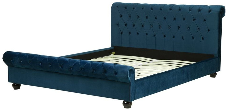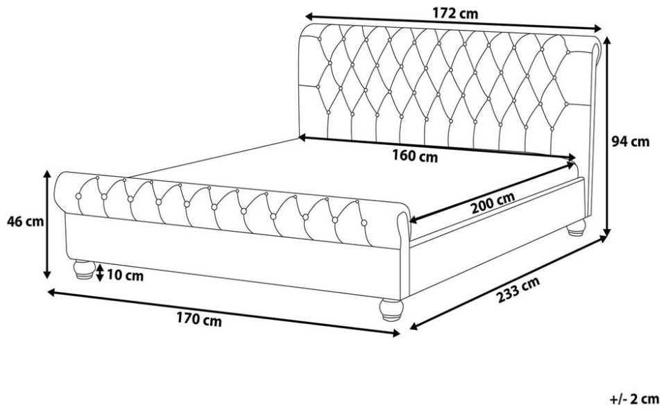 Το κρεβάτι στο χαρακτηριστικό στυλ Chesterfield διακρίνεται από ένα διαχρονικό σχέδιο που θα προσθέσει κομψότητα σε κάθε υπνοδωμάτιο. Το βελτιωμένο σχήμα του κεφαλαριού και του υποστηρίγματος ποδιών, σε συνδυασμό με υψηλής ποιότητας καπιτονέ, δημιουργούν ένα εξαιρετικά άνετο και κομψό έπιπλο. Η βελούδινη ταπετσαρία γυαλίζει σε διάφορες αποχρώσεις, είναι λεία και ευχάριστη στην αφή. Ένα τέτοιο κρεβάτι φαίνεται υπέροχο σε λαμπερούς, vintage και παραδοσιακούς εσωτερικούς χώρους. Ύψος: 94