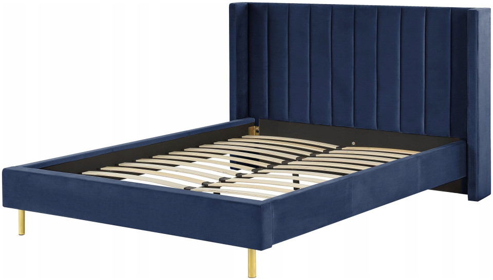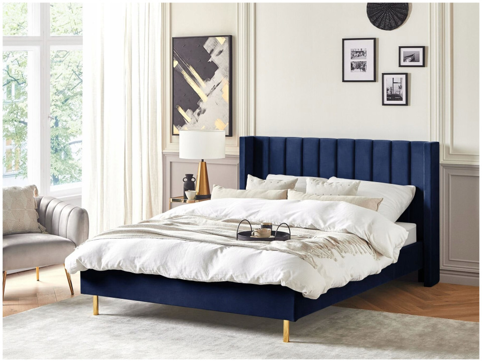 Beliani Βελούδινο κρεβάτι 160 x 200 cm μπλε VILLETTE