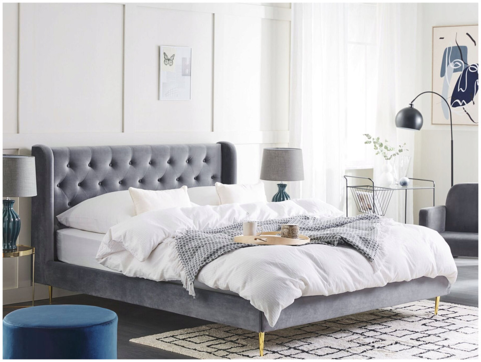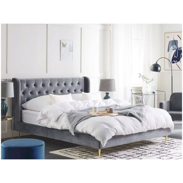 Κρεβάτι Beliani Velvet 160 x 200 cm γκρι FORBACH Lumarko! 13486138 4251682276320