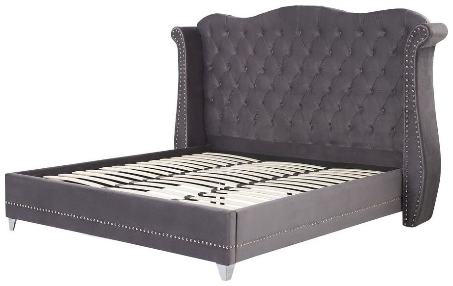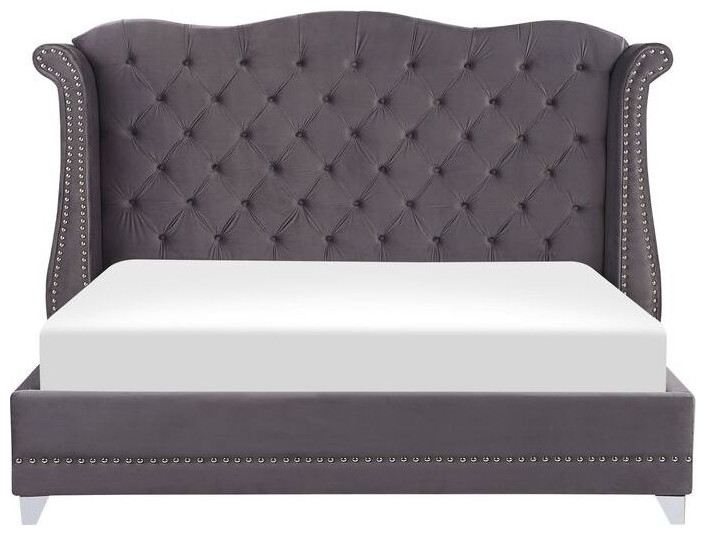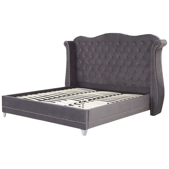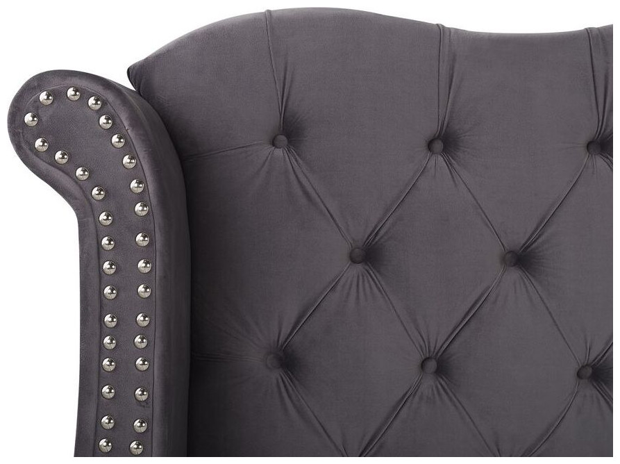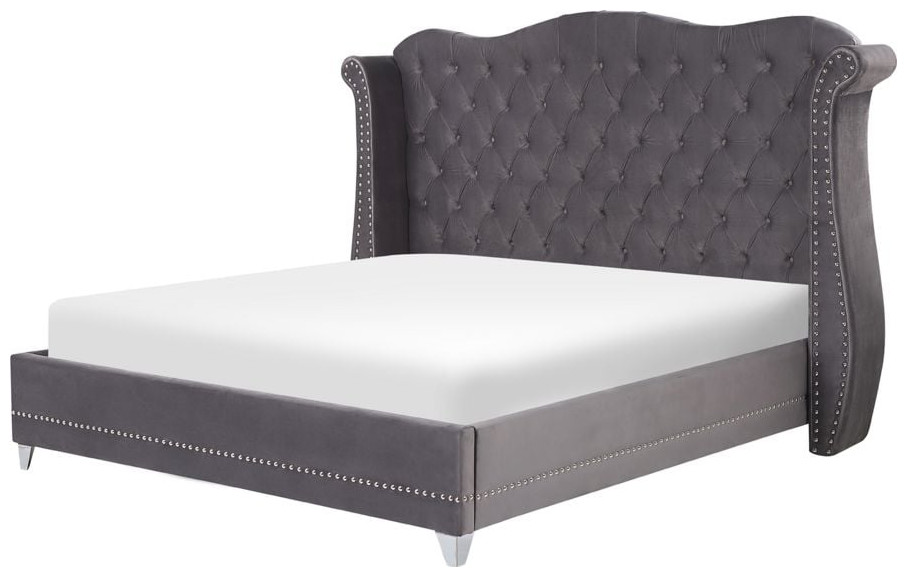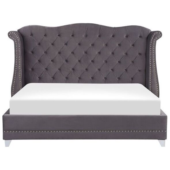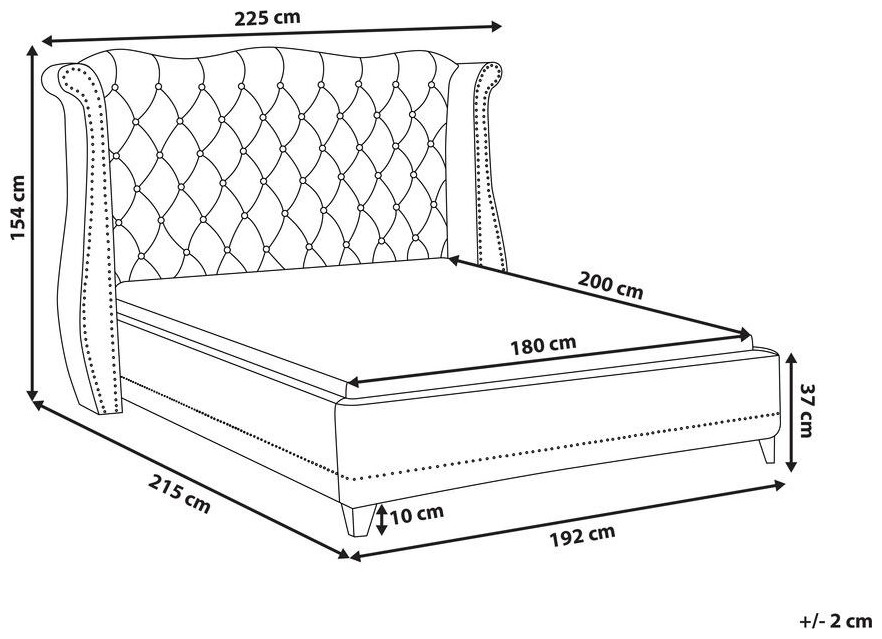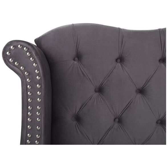 Με αυτό το κρεβάτι, κάθε υπνοδωμάτιο θα αποκτήσει έναν κομψό χαρακτήρα. Το απλοποιημένο σχήμα του καπιτονέ κεφαλάριου με δύο πλαϊνά φτερά το καθιστά ένα έπιπλο που ταιριάζει τέλεια σε λαμπερούς ή παραδοσιακούς εσωτερικούς χώρους. Το πλαίσιο είναι επιπλέον διακοσμημένο με μεταλλικά καρφιά γύρω από όλο το περίγραμμα. Το κρεβάτι διαθέτει πλαίσιο που εξασφαλίζει επαρκή ροή αέρα και στήριξη του στρώματος. Ύψος: 154