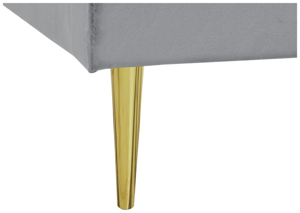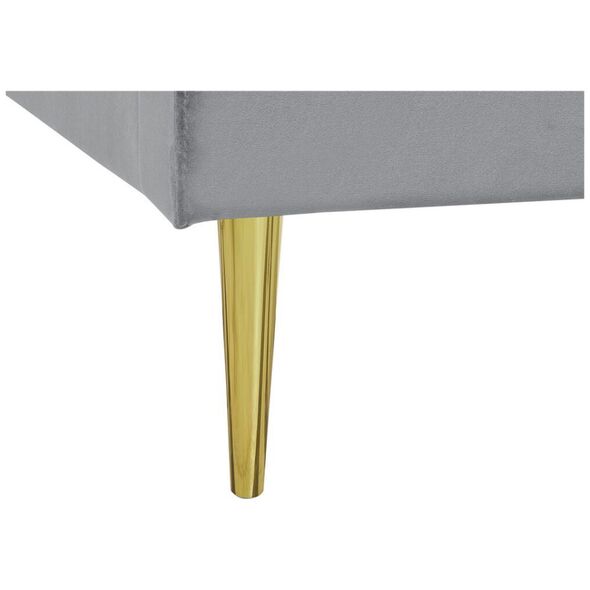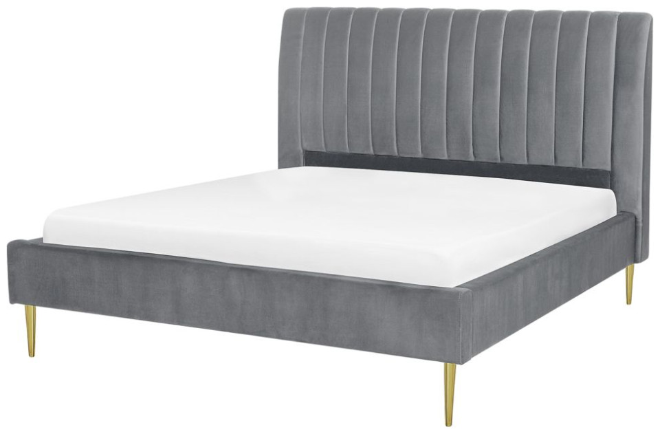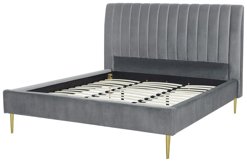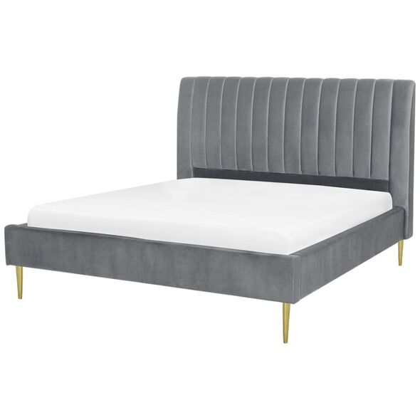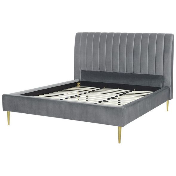Κάθε υπνοδωμάτιο χρειάζεται ένα άνετο, μεγάλο κρεβάτι που θα σας επιτρέψει να χαλαρώσετε μετά από μια δύσκολη μέρα. Αυτό το κρεβάτι όχι μόνο θα το εγγυηθεί, αλλά θα προσθέσει και κομψότητα στο διαμέρισμά σας. Η βελούδινη ταπετσαρία του, σε συνδυασμό με τα χρυσά πόδια, φέρνει στο μυαλό το λαμπερό στυλ. Ένα ψηλό κεφαλάρι διακοσμημένο με κάθετες γραμμές αυξάνει την άνεση στη χρήση και το πλαίσιο που περιλαμβάνεται εξασφαλίζει έναν ξεκούραστο ύπνο. Ύψος: 124