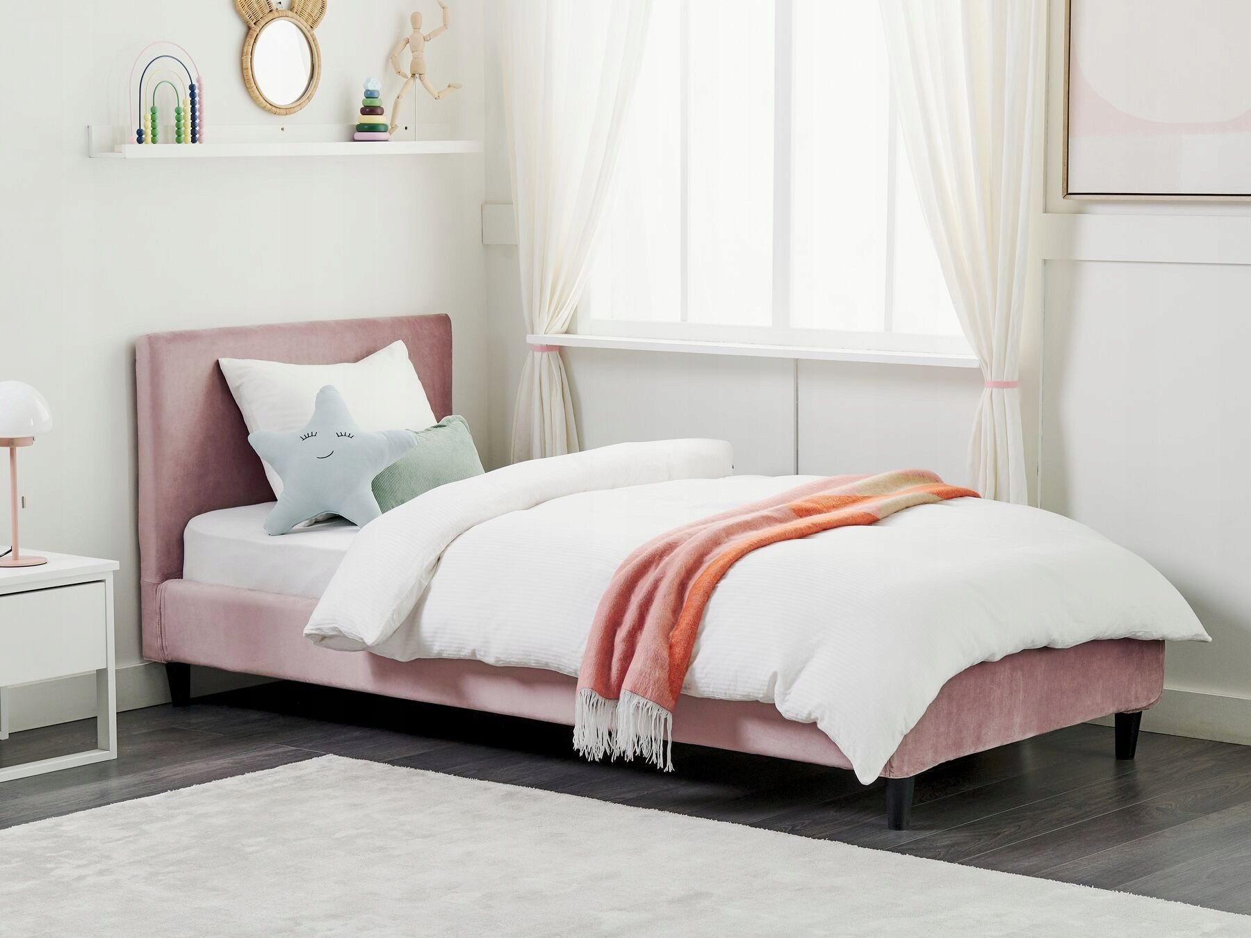 Κρεβάτι Beliani Velvet 90 x 200 cm ροζ FITOU Lumarko! 13286192 4255664835901