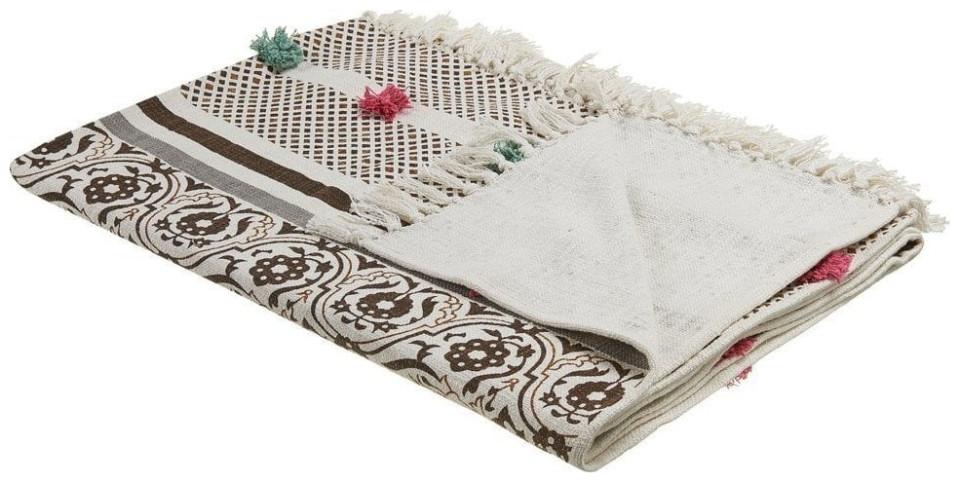 Κουβέρτα Beliani Lumarko Βαμβακερή 130 X 180 εκ. Καφέ Με Μπεζ Τσινσουρά! 12604277 4251682285568