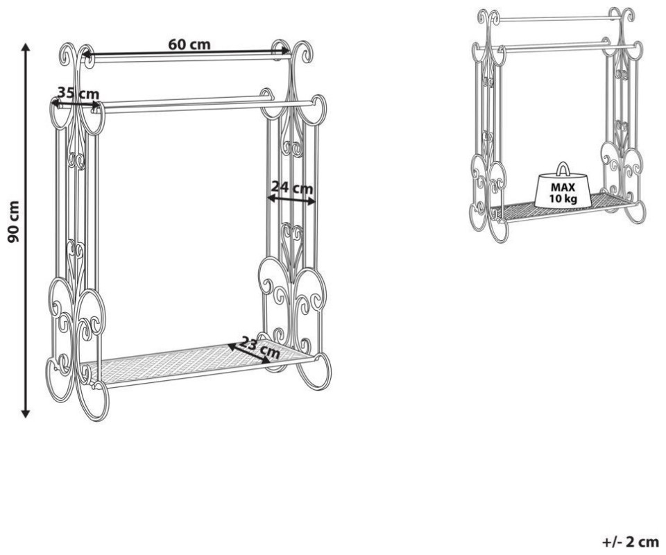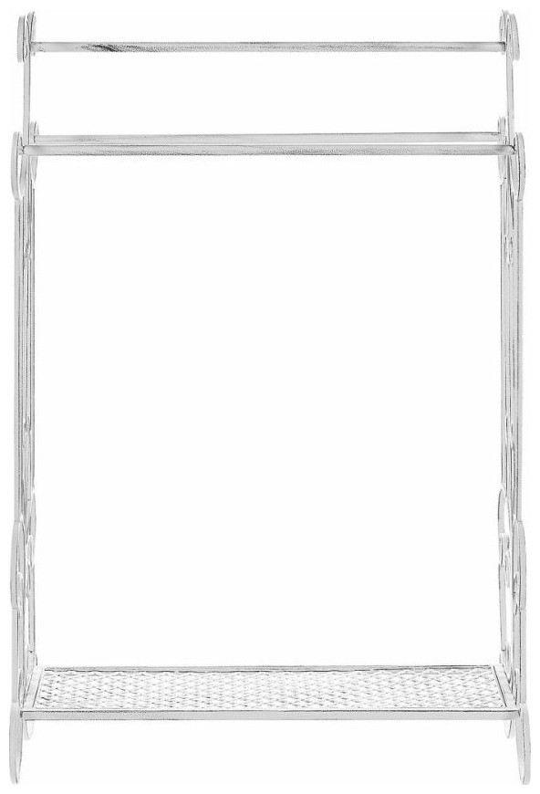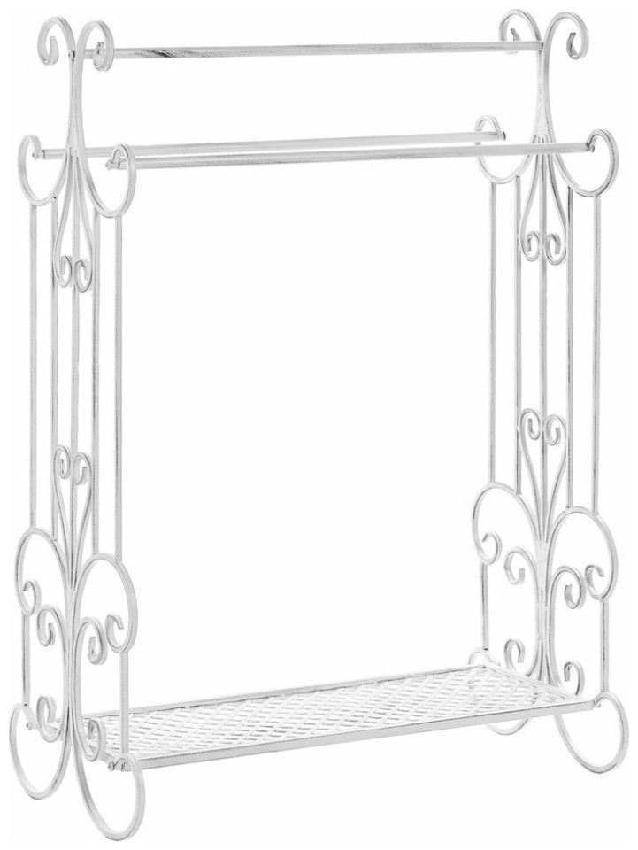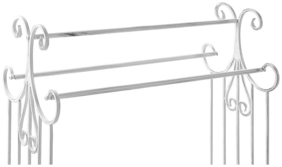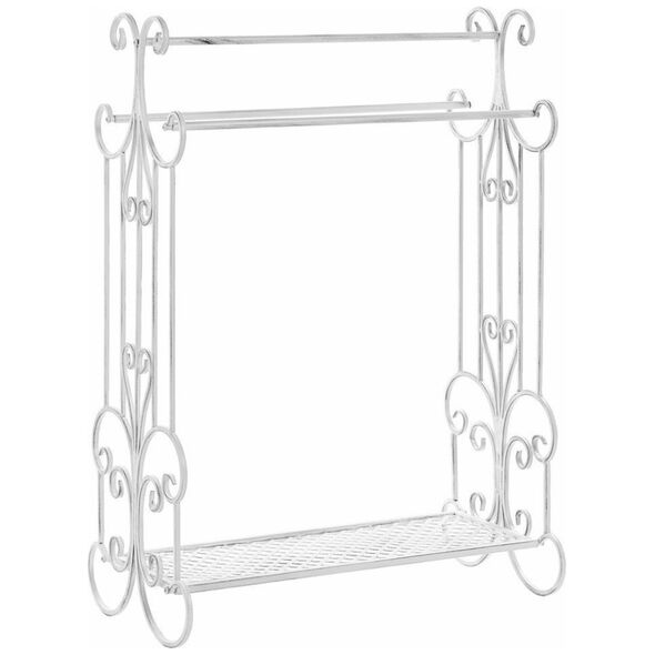 Διατηρήστε το μπάνιο σας τακτοποιημένο με αυτή τη σχάρα για πετσέτες. Το προϊόν είναι κατασκευασμένο από μέταλλο, γεγονός που το καθιστά εξαιρετικά ανθεκτικό και δεν απαιτεί συχνή φροντίδα. Η βάση είναι εξοπλισμένη με 3 ράγες στις οποίες μπορείτε να κρεμάσετε πετσέτες για να στεγνώσετε ή καινούριες για να τις έχετε πάντα στη διάθεσή σας αφού βγείτε από την μπανιέρα. Επιπλέον, το προϊόν διαθέτει ένα ράφι στο οποίο μπορείτε να τοποθετήσετε πρόσθετα αξεσουάρ μπάνιου ή σκεύη ρούχων. Το όλο θέμα είναι σε στυλ ρετρό και έχει υπέροχα διακοσμητικά, χάρη στα οποία το περίπτερο θα τραβήξει εύκολα την προσοχή.{Χρώμα} λευκό . {Χρώμα} λευκό . {Χρώμα} λευκό . {Χρώμα} λευκό . {Χρώμα} λευκό . {Χρώμα} λευκό