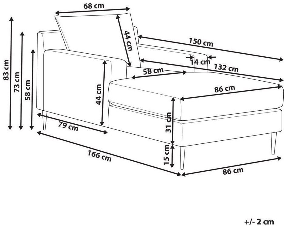 Η προσφορά περιλαμβάνει: 1 x Chaise Longue, 1 x μαξιλάρι πλάτης