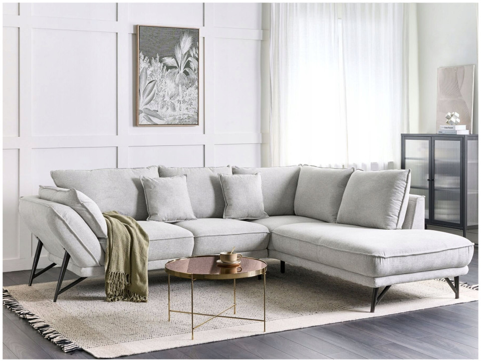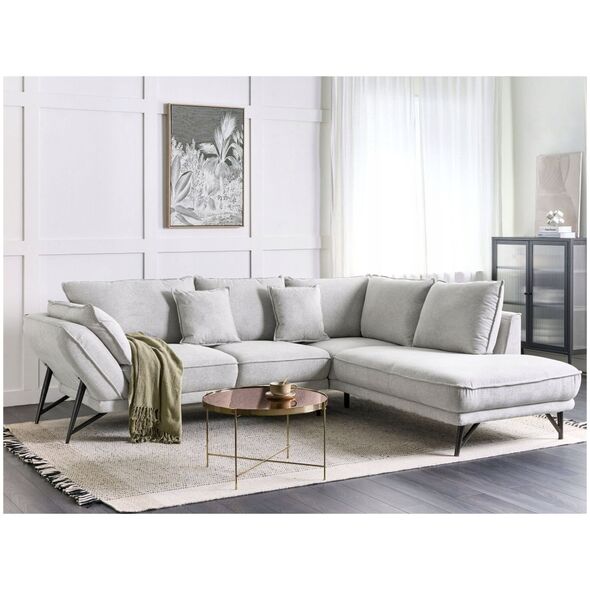 Beliani Αριστερός γωνιακός καναπές, λινός, ανοιχτό γκρι ELGA Lumarko! 13523748 4255664838339