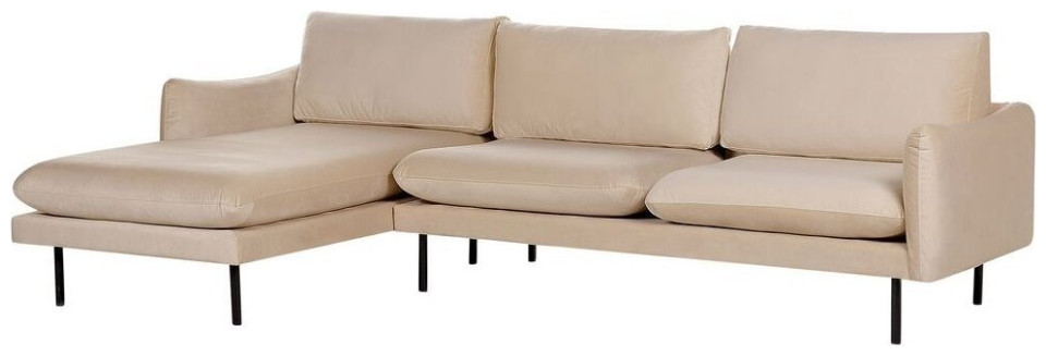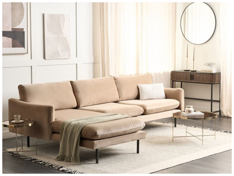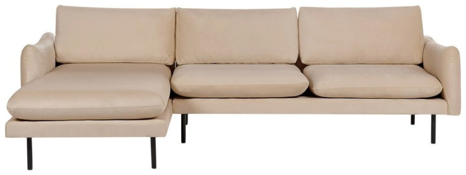 Beliani Δεξιός βελούδινος γωνιακός καναπές, μπεζ VINTERBRO Lumarko! 13559733 4255664854490