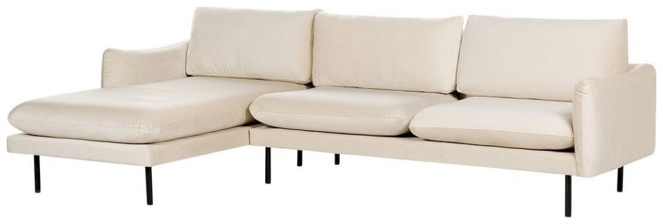 Beliani Δεξιός βελούδινος γωνιακός καναπές, ανοιχτό μπεζ VINTERBRO Lumarko! 13559730 4255664854551