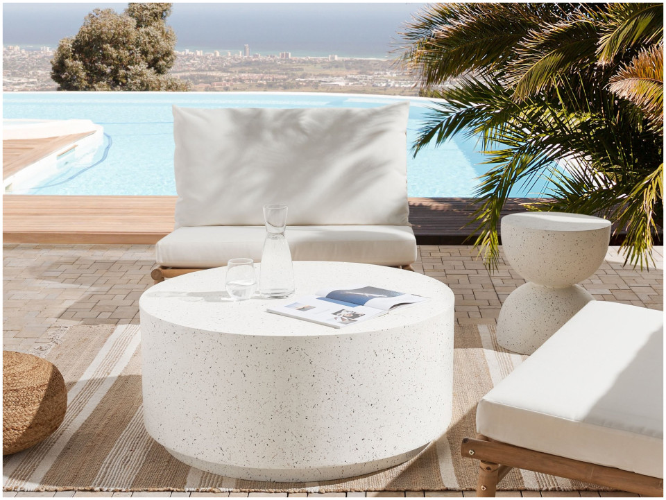 Στρογγυλό τραπεζάκι σαλονιού λευκό με εφέ terrazzo TREZZO Lumarko!